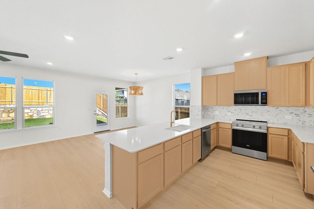 We make it easy to view our move-in ready homes with self-guided tours! Ask your sales counselor for more information, so you can see this stunning, single-story home that showcases an open floor plan with stylish luxury vinyl plank flooring and a spacious great room for relaxing and entertaining. A versatile den provides space for a home office or playroom. The kitchen boasts Shaker-style upper cabinets, sleek tile backsplash and Silestone® countertops in Linen Cream. Relax in the primary bedroom, which features plush carpeting, a walk-in closet and connecting bath that offers tile flooring, a dual-sink vanity and a luxurious walk-in shower. Additional highlights include a smart thermostat, timeless Sherwin-Williams® interior paint, modern Moen® fixtures throughout and ceiling fans at great room, den and primary bedroom. Enjoy outdoor living on the covered back patio.