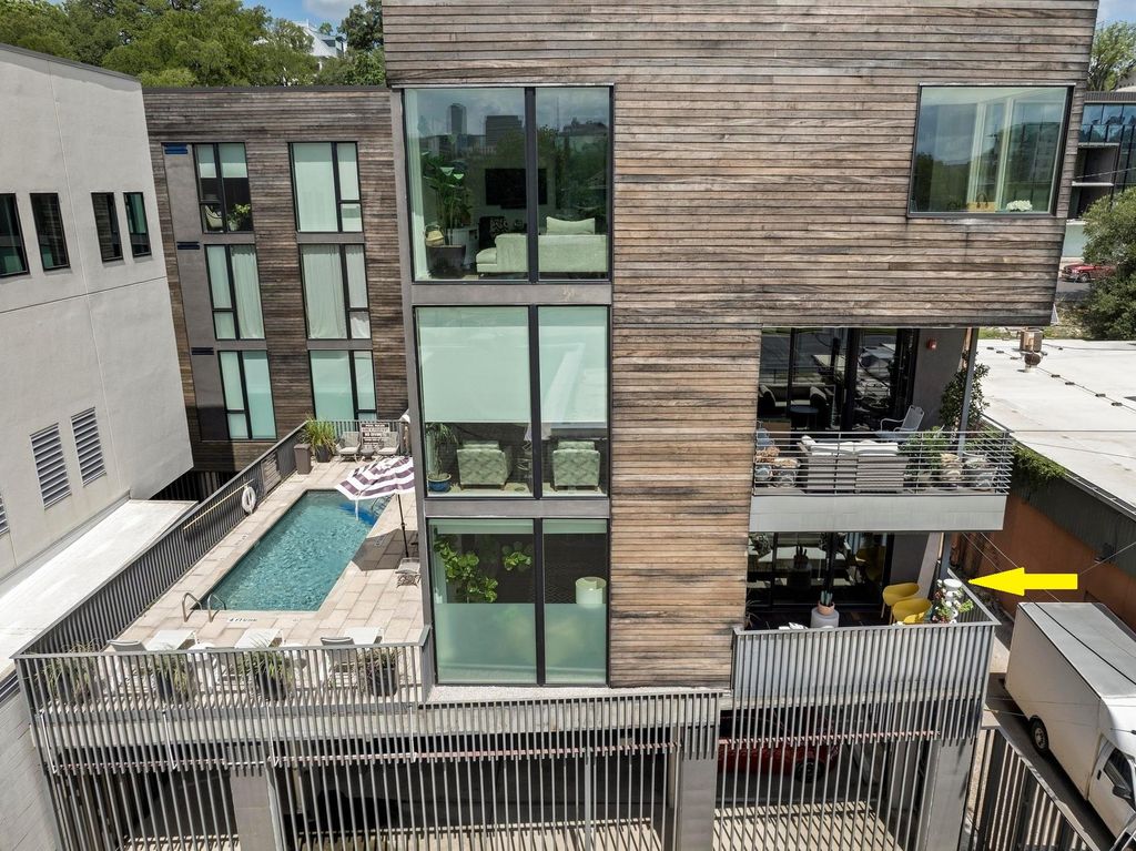 Experience luxury urban living in this stunning corner unit condo offering breathtaking views of the Capitol, Austin mural, and the downtown skyline. Designed by Award Winning Architecture Firm Alterstudio, this spectacular 3 bedroom and 2.5 bath is filled with natural light from floor-to-ceiling windows and features a private balcony perfect for relaxing or entertaining. The open-concept living and dining area flows seamlessly into a chef's kitchen equipped with high-end appliances, a gas cooktop, wine/beverage fridge, sleek quartz countertops, and a massive quartz island for effortless entertaining. The expansive primary suite is a true retreat with a custom-installed wardrobe, oversized walk-in closet, and a spa-inspired bath complete with dual quartz vanities, an oversized walk-in shower, and a deep soaking tub. Enjoy access to resort-style amenities including a pool, all just steps away from iconic local favorites. Located near Pease Park, Shoal Creek Trail, Whole Foods, Lake Austin, and some of the best dining and coffee spots in the city, this home places you at the center of it all while offering the peace and privacy of a premium corner unit.