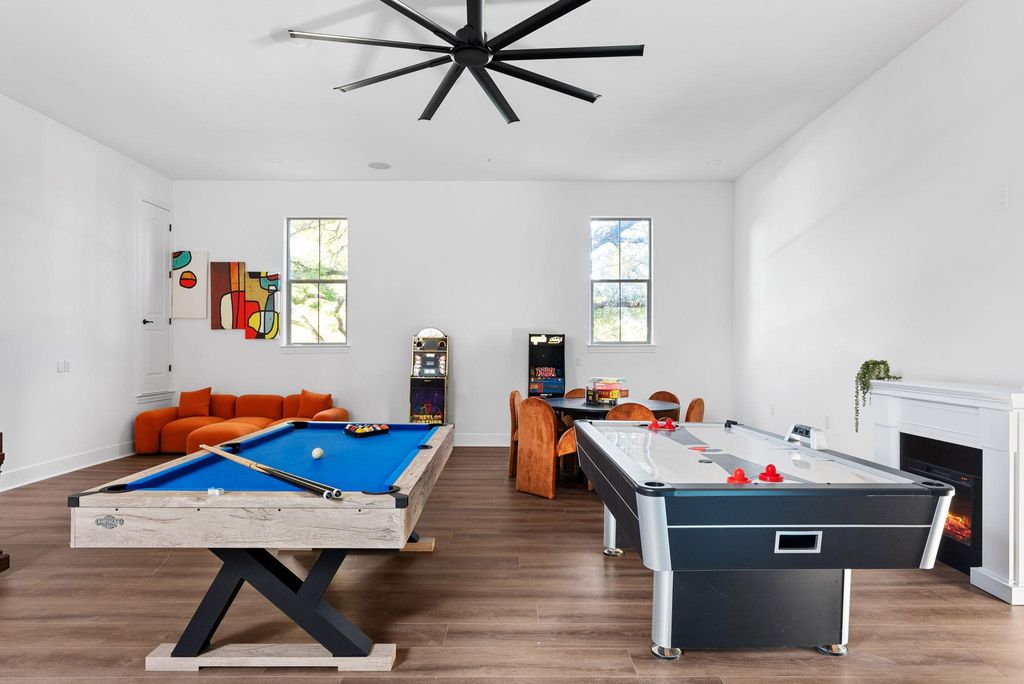 Rare opportunity in Steiner Ranch this 6 bed, 6 bath, 6,441 sq. ft. estate sits on a double lot just minutes from Lake Austin and comes fully turnkey with a pool, pickleball court, and over $100K in designer furnishings. The home features expansive living spaces including a massive event room that can flex as a playroom, gym, or entertainment hall. Currently operated as a short-term rental, it produced $265K in gross revenue over the past 12 months with projections to exceed $300K in 2026, operating at ~9% cap rate. With $100K in future bookings, no HOA, and outside Austins ETJ saving an additional 11% in city STR taxes this property is both a lifestyle retreat and proven income generator. Contact the listing agent for verified financials, pro formas, and additional details!