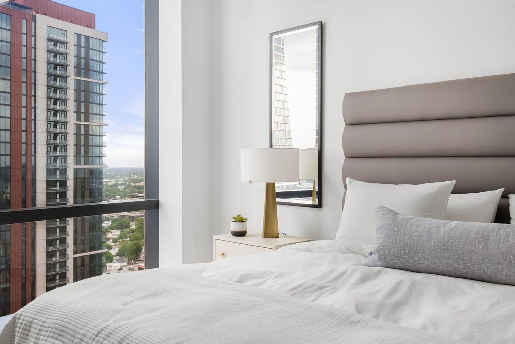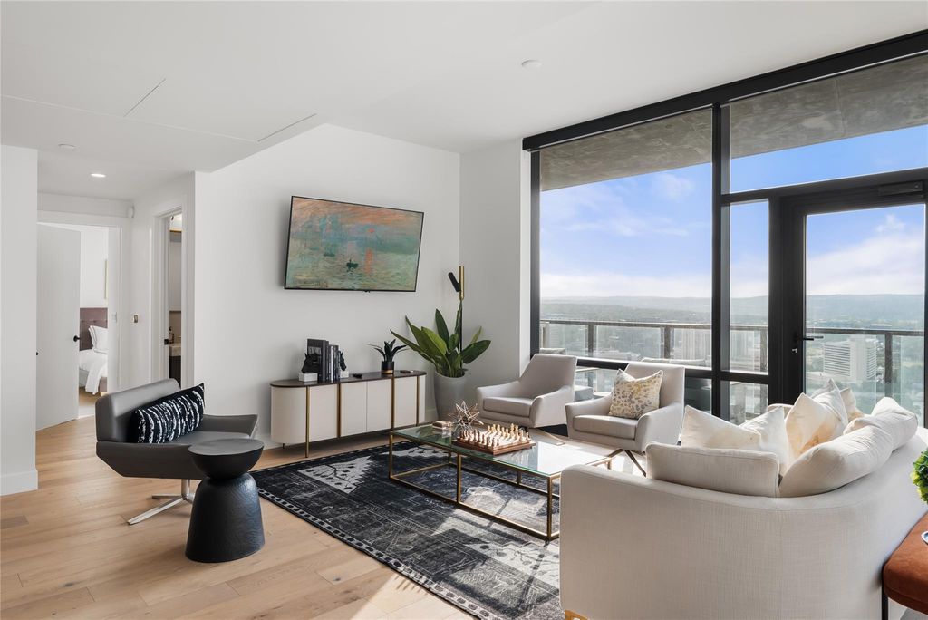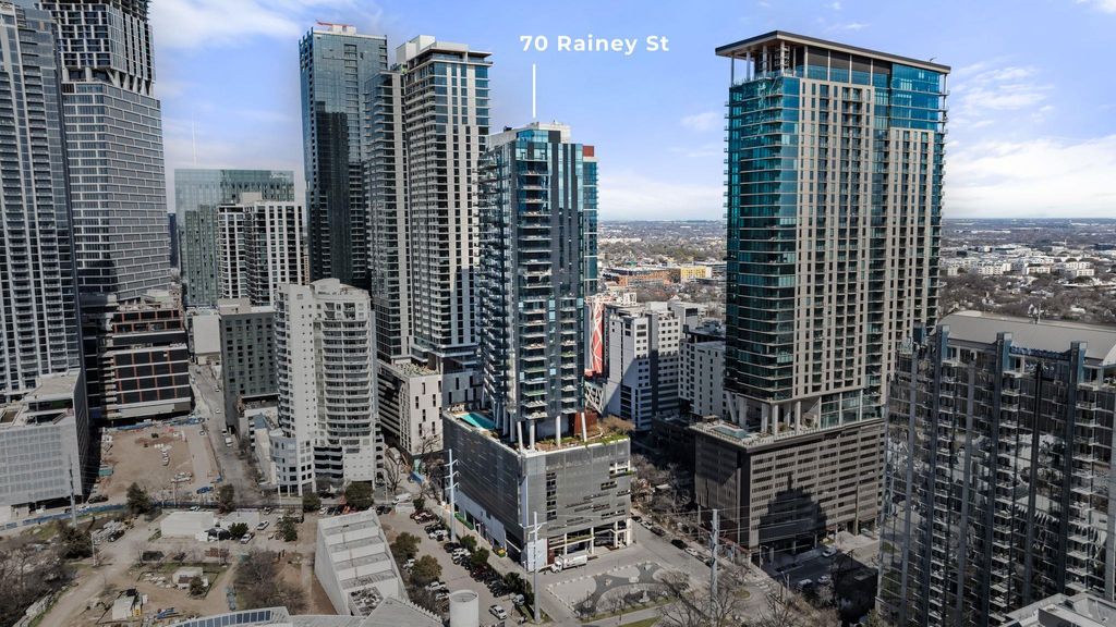 Perched on the 26th floor of one of Austin's most prestigious high-rises, this fully furnished 3-bedroom, 3-bath residence spans 2,179 square feet and offers sweeping, unobstructed views of Lady Bird Lake and downtown Austin. Designed by Mark Zeff and developed by Sackman Enterprises, 70 Rainey is a statement in modern luxury"”where design, location, and lifestyle converge. Inside, wide-plank European oak floors and floor-to-ceiling windows create a warm, sunlit space with clean lines and timeless appeal. The expansive and open living space invites connection, while the bedrooms are thoughtfully tucked away"”offering a quiet escape from the social heart of the home. The kitchen features sleek black cabinetry, Miele appliances, and quartz countertops"”perfect for entertaining or quiet evenings at home. Remote-controlled solar shades offer privacy and shade at the touch of a button, while a private balcony invites you to take in the skyline with morning coffee or an evening glass of wine. Beyond the residence itself, 70 Rainey offers 31,000+ square feet of resort-style amenities: a 72-foot infinity pool with downtown and lake views, a state-of-the-art fitness center with saunas and a cold plunge, poolside cabanas, fire pits, and an outdoor kitchen for sunset BBQs. This unit comes with two reserved garage parking spaces. With 24/7 concierge service and direct access to the Hike & Bike Trail, this is elevated Austin living"”right in the heart of the city.