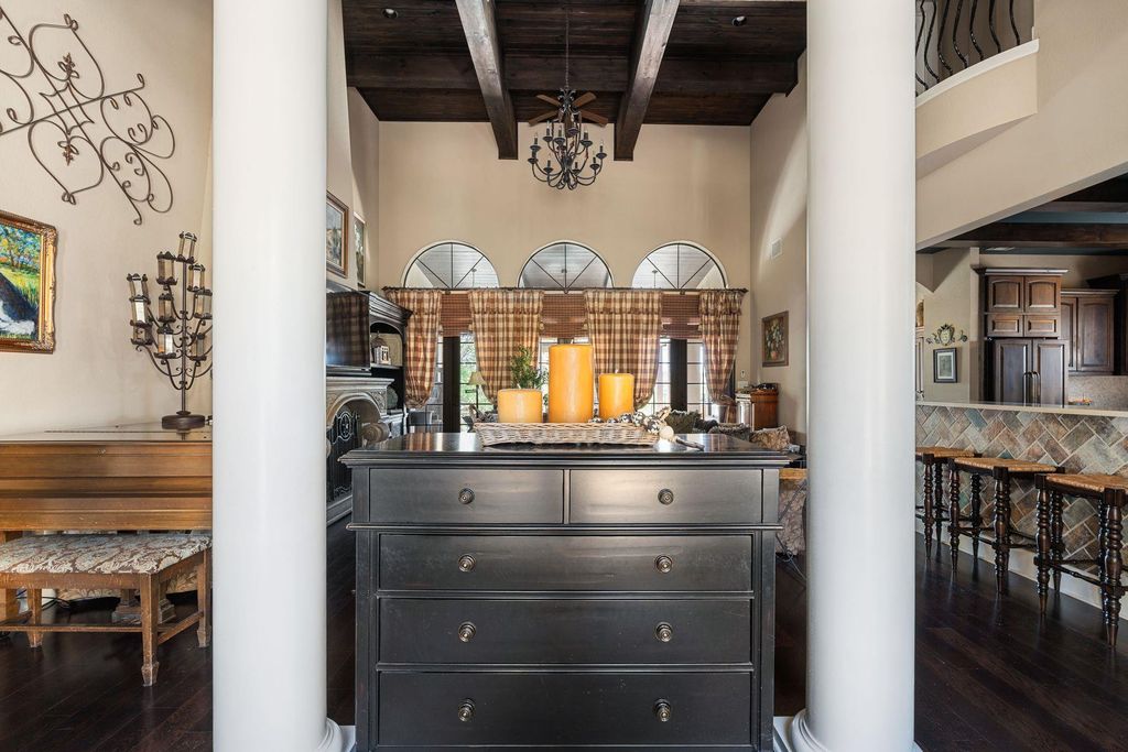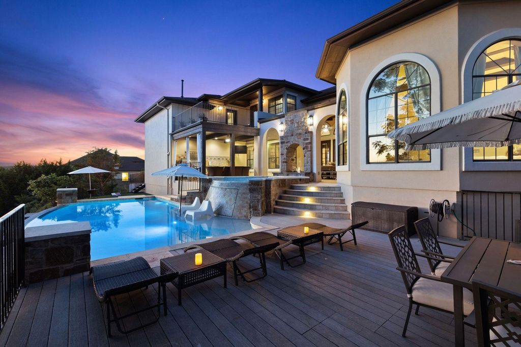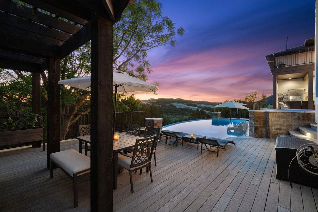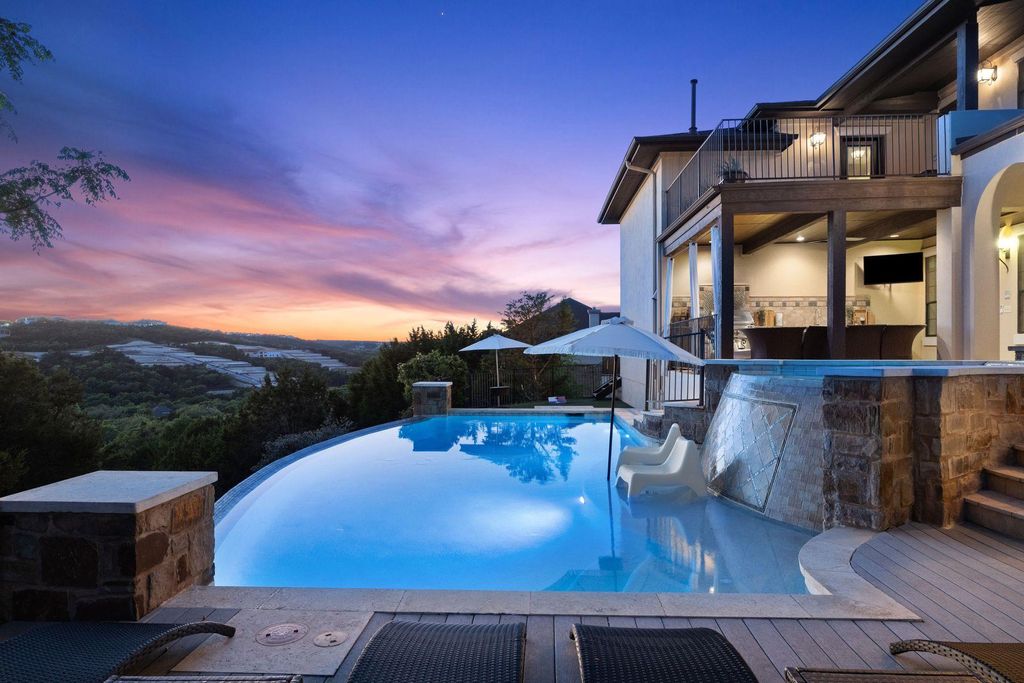 Resort-Style Tuscan Retreat with Stunning Hill Country Views on a Private Cul-De-Sac in Grand Mesa! Experience timeless Mediterranean charm blended with luxurious Texas living in this stunning custom home. Nestled in the heart of the Hill Country on a quiet cul-de-sac, this residence offers panoramic views that stretch for miles, seamlessly framed by six sets of 8' double French doors that open the expansive great room to nature's beauty. Showcasing beautiful architectural details, the home features elegant arches, stately columns, a custom fireplace, and soaring beamed ceilings. Rich hardwood floors flow throughout, enhancing the warmth and character of the space. The gourmet kitchen is a chef's dream, complete with granite countertops, stainless steel Jenn-Air appliances, double ovens, and stunning fixtures. Step outside to enjoy two levels of expansive decks, a luxurious infinity-edge pool, outdoor kitchen, fire pit, and a separate garage apartment"”perfect for extended guests or additional rental income. An architectural series roof and fine finishes throughout make this home as durable as it is beautiful. This is Hill Country living at its finest"”style, space, and spectacular views await. Main House: 4 BEDS | 3.5 BATHS | BALCONY | POOL | VIEWS | 3,433 SQFT | 1.184 ACRES Garage Apartment: 2 BEDS | 1 BATH | LIVING ROOM | 702 SQFT