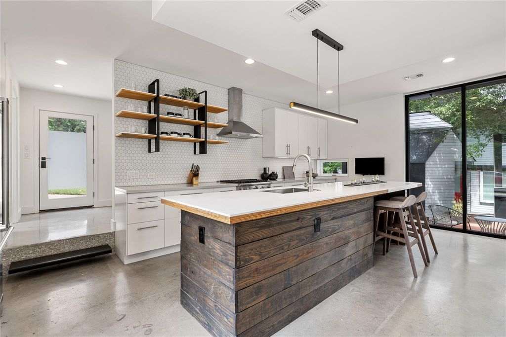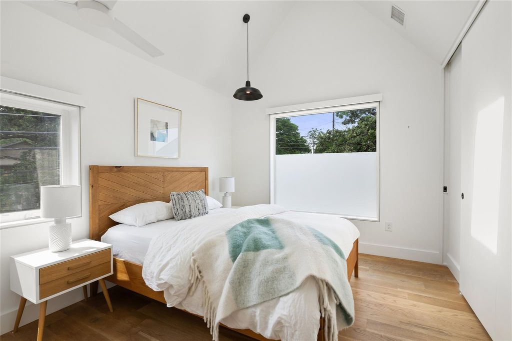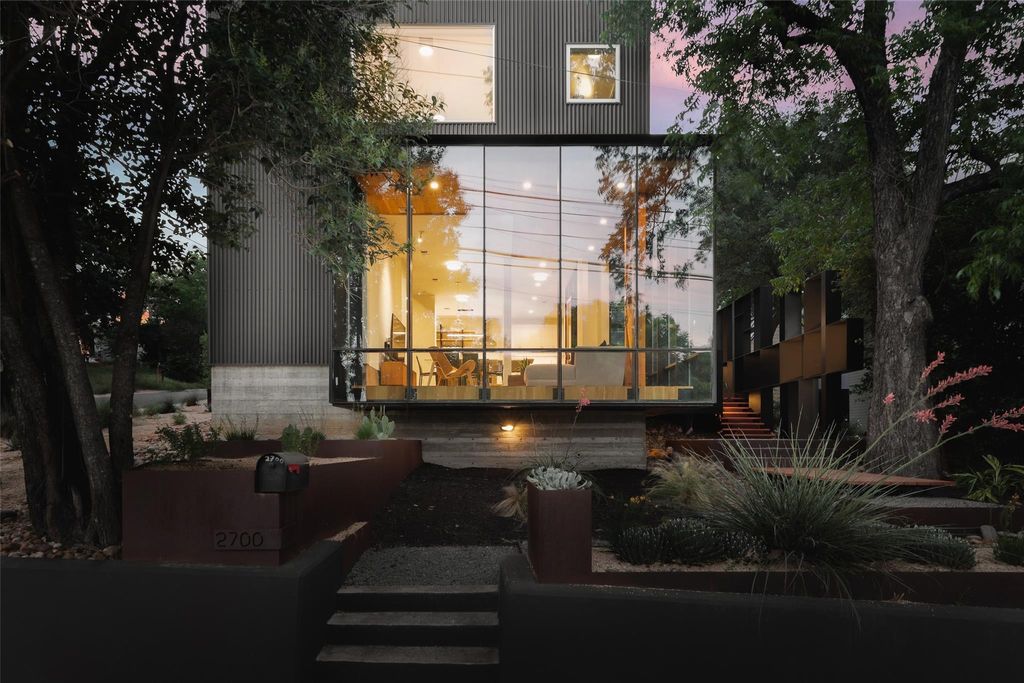 2700 E 12th Street is a one-of-a-kind architectural jewel, designed & built by Minguell-McQuary Architects. Newly constructed in 2016-17, this high-quality east side modern home exudes style, sophistication, and custom architectural detailing that sets it apart from the rest. Artful moments throughout give this home a sense of specialness & rarity: walls of commercial-grade floor-to-ceiling windows, hidden automated shades, exposed structural lumber K-bracing, a hand-made floating steel stair with architectural railing, intricately designed landscape & hardscape elements, just to name a few. With 2,333 sq. ft. of conditioned interior space (TCAD), this home feels open and generous, while also well-scaled and comfortable. The oversized windows pull the exterior landscape inside, providing well-balanced natural daylighting all day long. The plan includes a large primary suite with soaring ceilings, two additional bedrooms, two full baths + one half-bath, a private lounge, an office / library space, a mudroom, and a large attached exterior storage unit providing ample living space within this urban retreat. The kitchen is perfectly appointed with a gourmet Viking appliance package, perfect for the home chef or entertainer. Extensive built-in custom cabinetry & shelving, plus a 4-stool counter area w/ beverage chiller, complete this incredible space. Located just a stone's throw from Nixta & Birdies, around the corner from the 11th street area, and a short bike to the Mueller Farmers Market - the location and access can't be beat. Set directly across the street from the Boggy Creek Park & trail, and with easy access to the extensive bike lane network, it's an ideal spot to get downtown or enjoy the booming east side scene. ***This property is a stand-alone single family home, not a condo regime. **** Access Agreement: this property has a shared drive access agreement with two other modern homes, both designed & built by the same architect. ***
