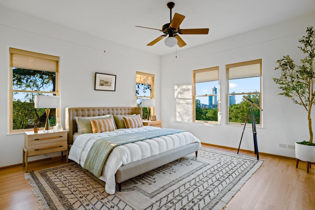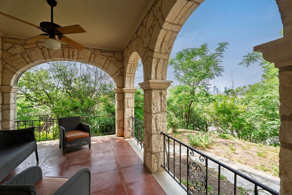 Travis Heights Historic Estate Perched above the canopy in desirable Travis Heights, the Louis & Mathilde Reuter House (1934) connects Austin's history with its future. This rare Spanish/Mission Revival home, oriented around mature heritage oaks, offers sweeping skyline and City Lights views from multiple vantage points, including the upstairs terrace, where sunsets become a nightly celebration. Inside, traditional craftsmanship defines each room: oak plank flooring, an antique Spanish mosaic in the dining area, clay tile reclaimed from UT's Old Main in the solarium, and a carved wood mantel beneath softly vaulted plaster ceilings. The main level includes a bedroom suite; upstairs, a bedroom with an attached office/reading room captures downtown views, while the private rooftop/upper terrace extends living into the sky. Set on over half an acre, the estate also features a separate guest house and spacious gardens. Carefully maintained and ready for the future, the property conveys with architectural plans for a full compound with a pool, guest quarters, pool house, gardens, and garage, allowing a new owner to elevate an already iconic property.