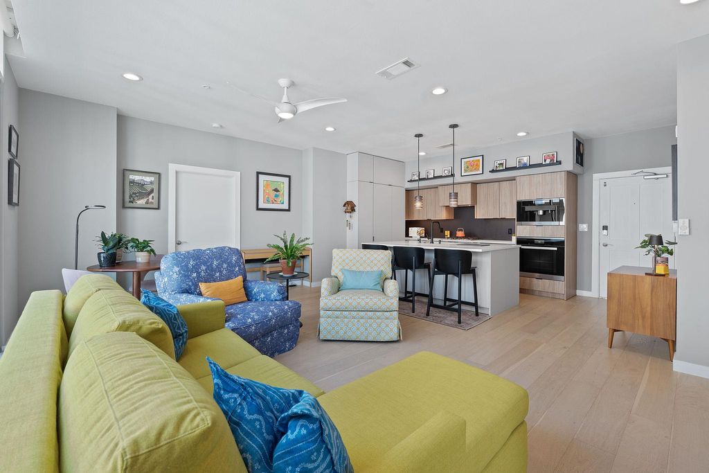 Welcome to exceptional living at BartonPlace, where modern style meets everyday functionality in this beautifully reimagined residence. Impeccable craftsmanship and curated upgrades elevate every inch"”from the chef-caliber kitchen and flexible guest suite to the stunning primary suite. Design-forward living starts in the fully renovated kitchen, where custom European cabinetry pairs seamlessly with a sleek, paneled Miele appliance suite. Highlights include a built-in coffee system, five-burner cooktop with dedicated wok feature, and a high-performance speed oven combining convection and microwave capabilities. The primary suite delivers a 5-star living experience with rich white oak feature walls, access to a secluded terrace, and a spa-inspired bath designed with precision and purpose. The guest bedroom easily transforms into a dynamic office space, featuring a built-in Murphy bed, abundant storage, and a fold-down work surface ideal for remote productivity. Smart technology and modern comforts continue throughout, with updated recessed LED lighting, app-enabled motorized shades in key living spaces, fresh-air screen doors opening to balconies, and a newer HVAC system providing peace of mind. Live where Austin plays at BartonPlace! Perfectly positioned between iconic Zilker Park and the vibrant city center, this incredible community truly offers residents the best of both worlds. BartonPlace offers residents a mix of modern luxury, convenience, and an active, outdoorsy lifestyle, making it one of Austin's most sought-after residential condo communities. Community amenities include a heated saltwater pool with a lounging and grilling area, four rooftop terraces with grills, expansive outdoor spaces including a community garden, an Owner's lounge with kitchenette, a guest suite for overnight visitors, a fitness room, a dog run, and a secure, gated environment with attentive 24-hour concierge service.