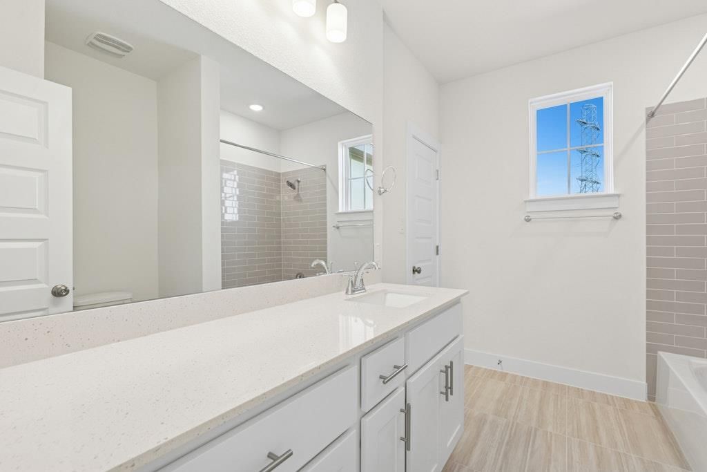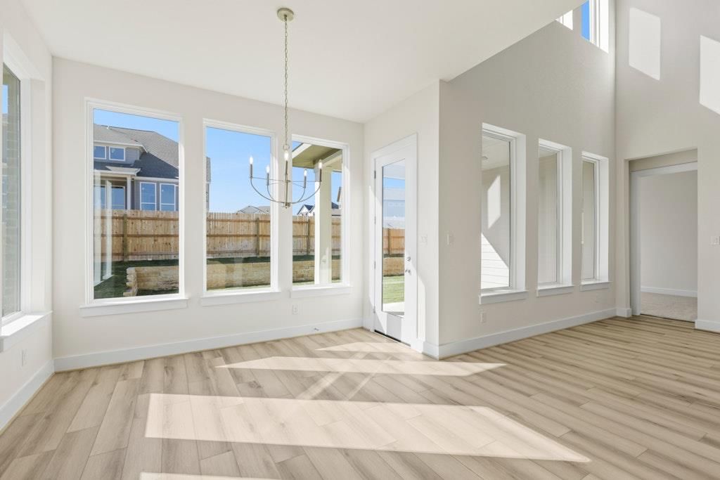 The Oltorf is a two story with approximately 3,084 sf of living space. 4 bedrooms (primary plus 1 guest room down), 4 full bathrooms, powder bath, formal dining, home office, game room, media room, luxury master bathroom, covered patio, and a 3-bay tandem garage. The homesite is approximately 8,798sf and faces East. The spacious kitchen features built-in stainless-steel appliances, quartz countertops, under cabinet lighting, 42" upper cabinets and more. The flooring is hard surface throughout the main areas, tile in the bathrooms, and carpet in the bedrooms. The quality construction includes; 10' ceilings and 8' doors throughout downstairs, open to below entry and family room, 4 sides masonry, Zip System sheathing, tankless water heater, and much more.