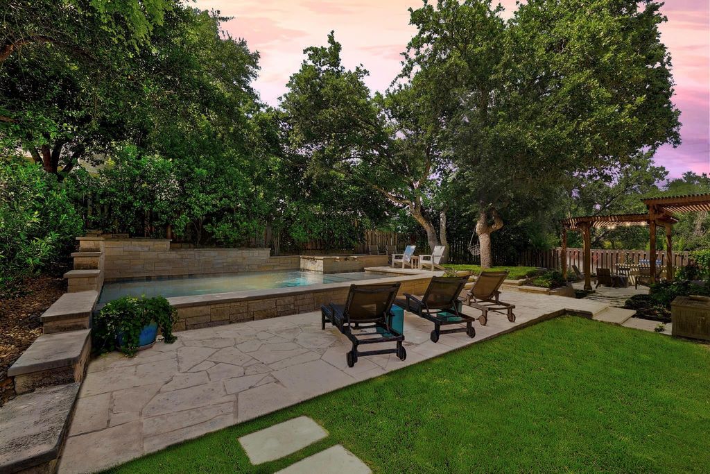 Spectacular 5 bedroom 3 bath home with pool and spa in the upscale community of Senna Hills in West Austin. The front porch and elegant foyer welcome you to an interior of hand-scraped wood floors and plantation shutters. Entertain in the formal living room with custom built-ins or in the family room featuring fireplace with stone mantel and surround. The kitchen boasts expansive quartz counters, Kitchen Aid stainless steel appliances, built-in oven and five burner gas cooktop. Enjoy your meal at the bar height seating, the breakfast nook or in the formal dining room with bay window. A bedroom on the first floor makes the perfect mother-in-law suite or home office thanks to the adjacent full bath. The primary bedroom suite captivates with walk-in closet and private balcony offering dramatic Hill Country Views. The luxury continues in the primary bath with dual marble topped vanities, Kohler fixtures, frameless glass shower with bespoke beveled subway tiles and incredible soaking tub. There's plenty of room for family and overnight guests with a third bedroom as well as two more bedrooms sharing a full bath. Enjoy games or movie night in the spacious bonus room. Or spend time in the backyard oasis with pool and spa with water feature. The golden glow of the pergola's overhead lights invites you to relax on the flagstone patio with outdoor kitchen. Served by the exemplary Eanes Independent School District. Residents enjoy exclusive access to miles of trails, sport and tennis courts and community pool. Plus, you're just minutes to the Hill Country Galleria with easy access to downtown Austin.