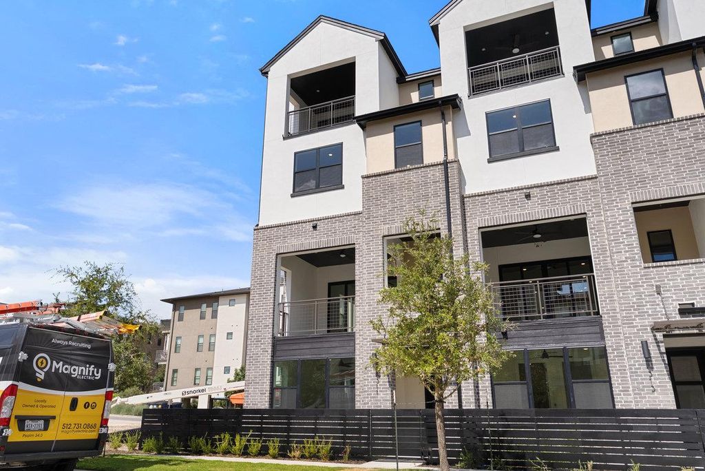Exquisite Four-Story Townhome offering Four Bedrooms, Four Full Baths, and Two Half Baths, thoughtfully designed for both elegance and convenience. A private elevator ensures effortless access to every level, while the first-floor bedroom suite provides ideal accommodations for guests or multi-generational living. At the heart of the home, the chef's kitchen showcases soaring 10-foot cabinetry, a quartz-topped center island, and sleek finishes that seamlessly combine modern style with functionality. Enjoy outdoor living year-round with two covered balconies, complemented by durable RevWood flooring and professionally landscaped surroundings. The striking modern European-inspired exterior enhances the home's architectural appeal. Perfectly situated within a vibrant, established community, residents are steps away from premier dining, retail, wellness, and recreation"”and just minutes north of downtown Austin.