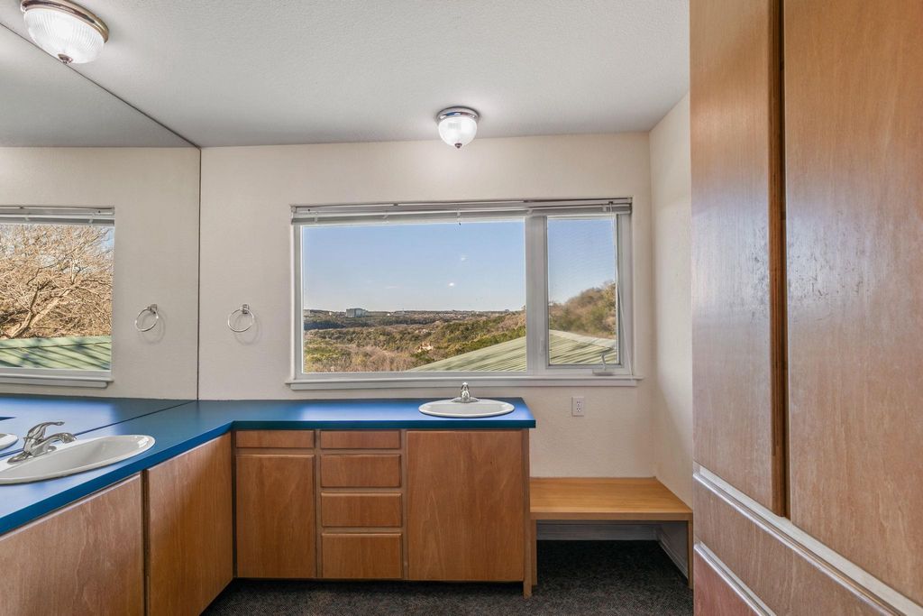 Unique property with unimpeded greenbelt views for miles. Currently duplex with studio - could be converted to single story, or live on one side and rent the other units to supplement mortgage, could also tear down and start from scratch. Bring your imagination - home is accessed via "secret alley" off Westrock. Nestled behind limestone cliff and overlooking the Barton Creek greenbelt. Entrance to home faces alley, there are multiple parking spaces in front or behind the home.