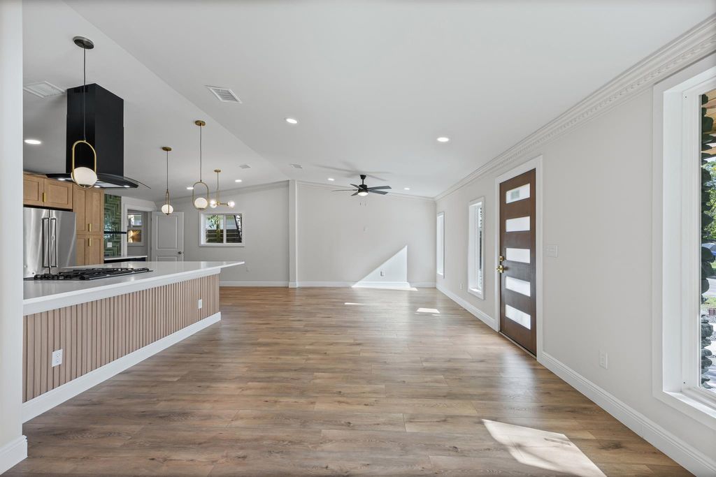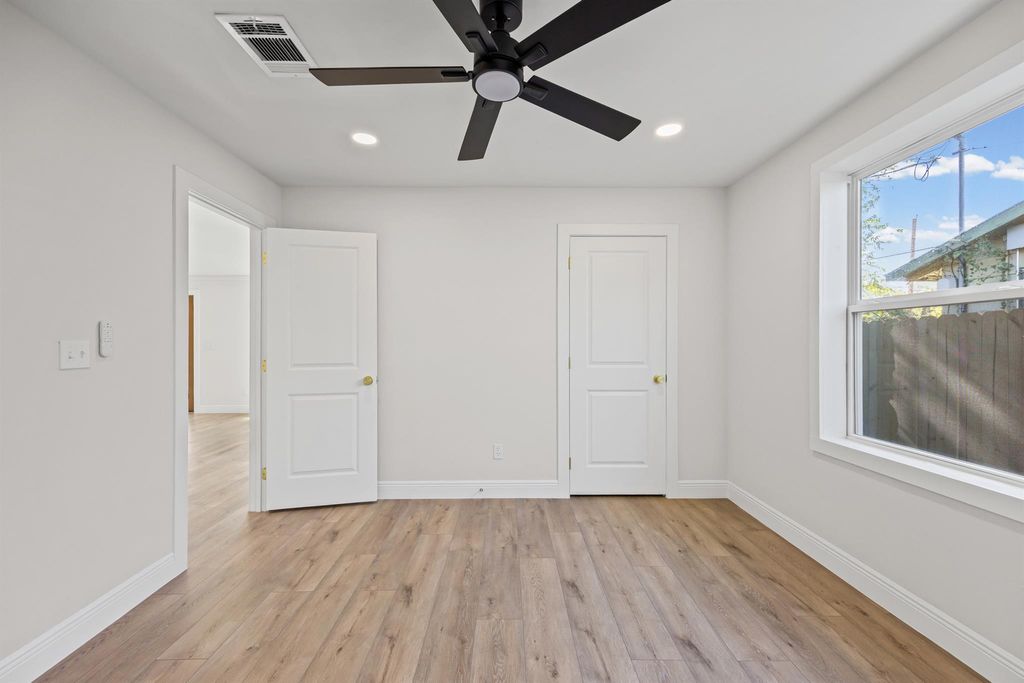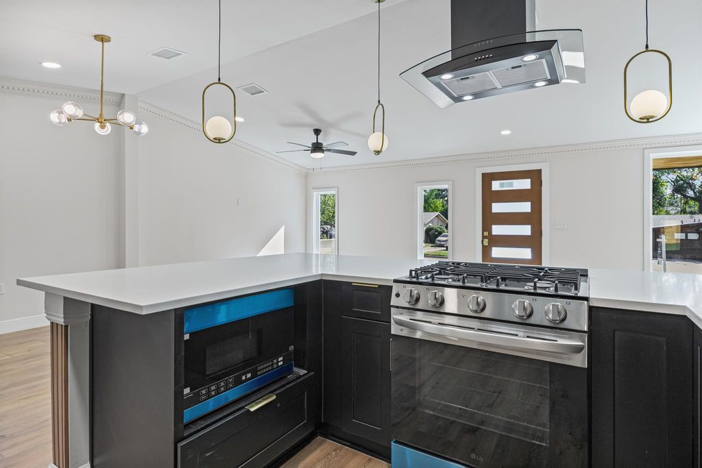 Beautiful Mid-Century Modern Renovation awaits you! Just 10 minutes from Austin-Bergstrom Airport and about 10 minutes from Downtown Austin. This home offers it all! Stunning finishes, including custom cabinets, new windows, quartz countertops, and stainless steel appliances. Updated electrical and plumbing systems have been installed. Additionally, there is a 400-plus square foot bonus room (Primary Suite). The bathrooms have also been stylishly updated with a modern and sleek look. The backyard features a privacy fence, New deck, a workshop, and lush green grass throughout. The front exterior has also been updated with a new driveway, attractive planters, and pavers, giving the home a charming and stylish curb appeal.