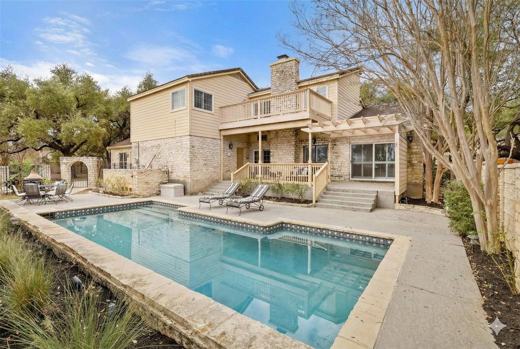 Situated on a rare double lot in the prestigious, gated community of The Hills, this exceptional home offers privacy, space, and an unparalleled lifestyle"”complete with its own private gate and a prime location near the main entrance. Lovingly maintained by the original owners, the residence has been thoughtfully expanded to include a dedicated home theater, a spacious office area, and an enlarged primary suite with an impressive bath and oversized closet. Inside, the home has been refreshed with new hardwood flooring and carpet, creating a warm, timeless feel throughout. The expansive grounds provide endless potential for outdoor living, future enhancements, or simply enjoying the privacy afforded by the oversized homesite. Residents of The Hills enjoy access to world-class amenities and championship golf courses, including The Hills, Flintrock, Live Oak, and Yaupon, along with tennis courts, multiple swimming pools, a state-of-the-art fitness center, and upscale dining options. The community also features a private playground, sport court, dog park, scenic walking trails, and an active social calendar that fosters a true sense of community. Ideally located within easy walking or biking distance to Lakeway Elementary and zoned to the highly acclaimed Lake Travis Independent School District, this home combines luxury living, convenience, and an exceptional Hill Country lifestyle"”all in one of Lakeway's most sought-after gated communities. The in-progress future development of The Square at Lakeway will be a stone's throw away, offering unparalleled convenience and proximity to future restaurants, retail and a five acre public park.
