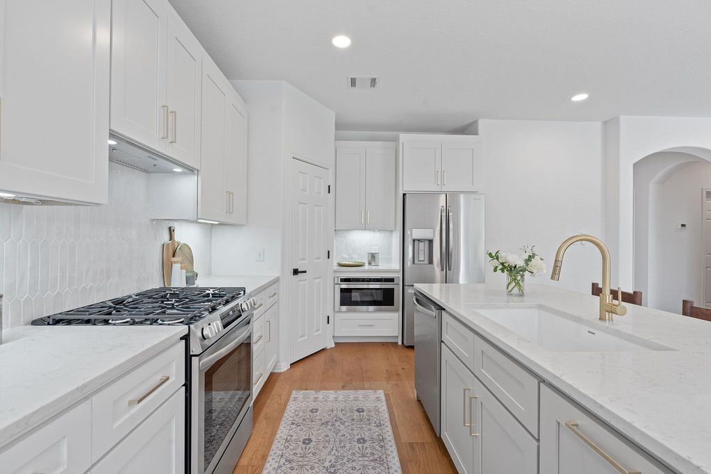 Welcome to 2209 Westfalian Trail"”a stunning, move-in-ready home that has been completely remodeled from top to bottom. This single-story residence offers an open and airy floor plan with three spacious bedrooms and elegant wood floors throughout. The all-new kitchen shines with modern appliances, custom cabinetry, and stylish finishes, while the bathrooms have been beautifully reimagined with contemporary fixtures and tilework. Every detail has been thoughtfully updated, including a new roof, HVAC system, and fresh interior design touches such as plantation shutters and designer tile and lighting. Enjoy the ease of single-level living and a location that can't be beat"”just a short walk to the community pool, playground, tennis courts, and the highly rated elementary school. Don't miss this rare opportunity to experience the best of Steiner Ranch living in this beautifully renewed home where modern style meets everyday comfort and convenience.