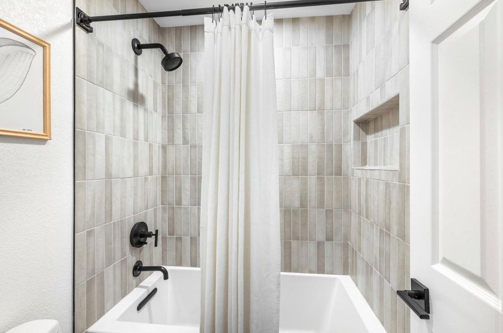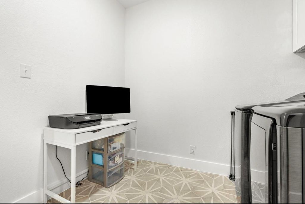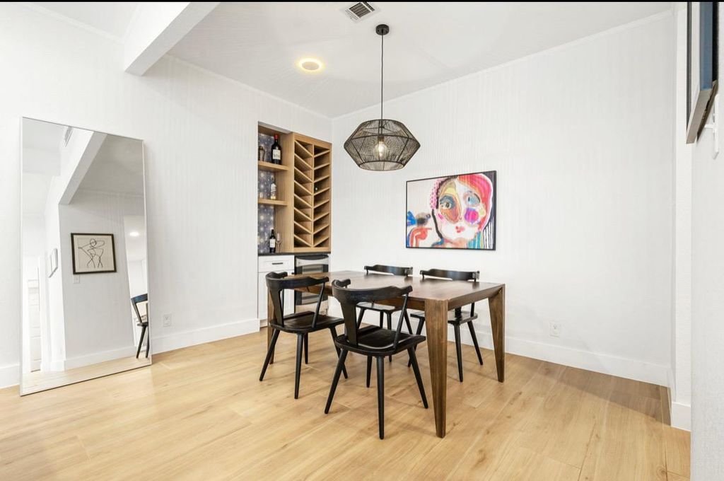 Currently leased at $4,000/month through 7/15/26. Nestled in the heart of Hyde Park, this beautifully remodeled 2/2 townhome (with a versatile formal dining room that easily converts to a third bedroom, office, or playroom) offers 1,467 sq. ft. of stylish living space. The open-concept design with vaulted ceiling in the living boasts wood-look white oak tile flooring, Bedrosians hex and rectangle tile in both bathrooms, Kohler fixtures, and a gorgeous kitchen with White Pilar quartz countertops, new cabinetry, white oak floating shelves, and custom wine storage with wine fridge and soapstone countertop. The stainless steel KitchenAid appliance package including refrigerator all convey. Step outside to a private, fenced yard featuring a tile patio, Timbertech deck, and turf yard beneath a gorgeous shade tree, perfect for relaxing or entertaining. A spacious laundry room (washer & dryer included) and a 2-car garage add convenience that can be hard to find in Hyde Park. Enjoy walkability to Austin favorites like Curra's, Hyde Park Bar & Grill, Quack's, Fresh Plus, Shipe Park, Commodore Perry, H-E-B, Jo's, and more. Zoned to sought-after Lee Elementary.