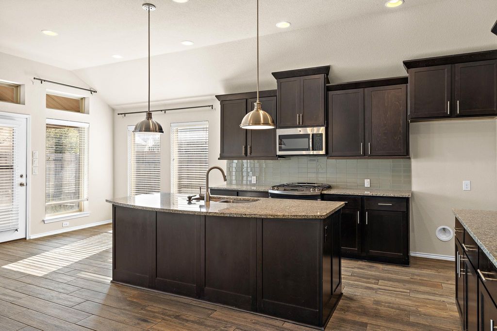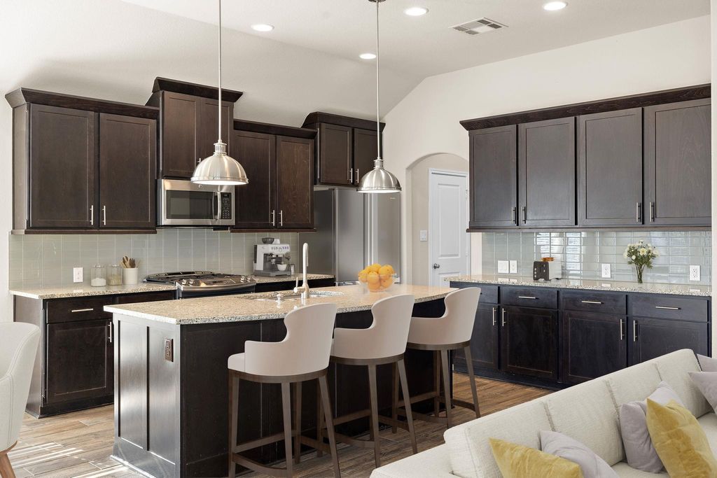 Welcome to 14113 Arbor Hill Cove - a former model home in ShadowGlen! Designed to showcase the builder's finest finishes and layout, this single-story residence offers an inviting foyer, formal dining area, 4 bedrooms, 3 full baths and 2 car garage with 5ft extension. The kitchen boasts a center island with seating, generous pantry storage, and ample counter space. The private backyard features an extended covered patio with ceiling fans, creating a shaded, comfortable retreat year-round. Bonus: premium oversized spa for a relaxing escape!