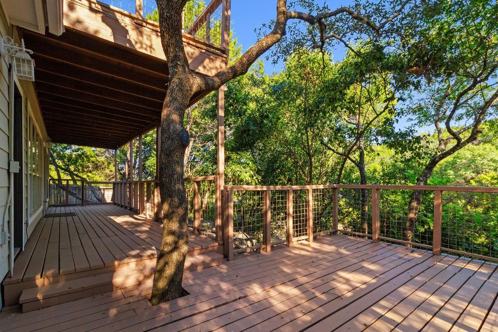 Now priced BELOW value indicated by October 2025 professional appraisal. Soak in nature sights and sounds every day from the comfort of this beautiful Eanes ISD home situated on two lots equaling .76 acres with privacy in every direction. You'll feel like you're living the lake life in your own peaceful treehouse, yet minutes from downtown. This gem is on the canyon side of one of the most desirable streets in the neighborhood and features both expansive back deck space for outdoor living and a huge, flat fenced-in front yard where kids and/or pets can safely play. New hickory hardwoods, marble floors, quartz countertops, Bermuda sod and industrial chic fixtures, along with many other updates, offer a stylish home ready for entertaining with pride. Wall-to-wall windows across the rear of the home frame a permanent backdrop of colorful, mature trees sprinkled along the canyon edge, which lines a wet-weather creek. The thoughtfully-designed floor plan includes a bonus room that could be used as a 5th bedroom, a game room or an office. Deeded membership to the Lake Hills Community Association available for access to private boat ramp on Lake Austin, swimming pool, clubhouse, park and more. Natural splendor that can't be built, top-rated schools, low tax rate, room to park a boat on your lot, less than 10 miles from downtown Austin - this is the one you've been waiting for. NOTE: Natural gas is available through CenterPoint Energy, which services this property. For buyers preferring propane, several local providers can install and service an on-site tank.