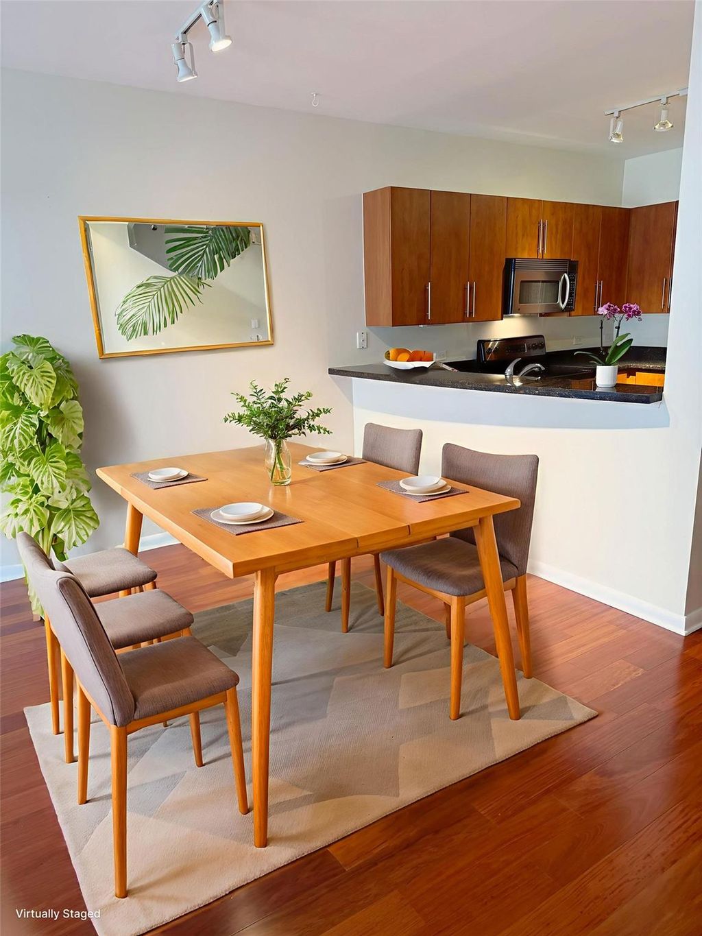 APPLIANCES | Dishwasher, Disposal, Electric Oven, Exhaust Fan, Free-Standing Refrigerator, Microwave, Self Cleaning Oven, Washer/Dryer Stacked |