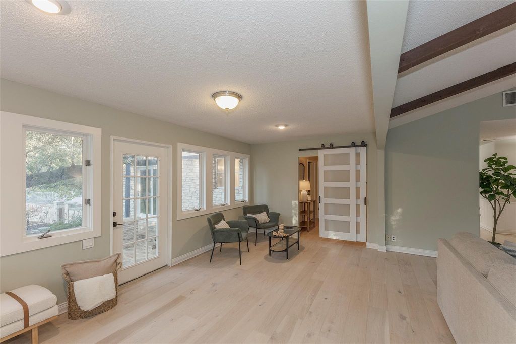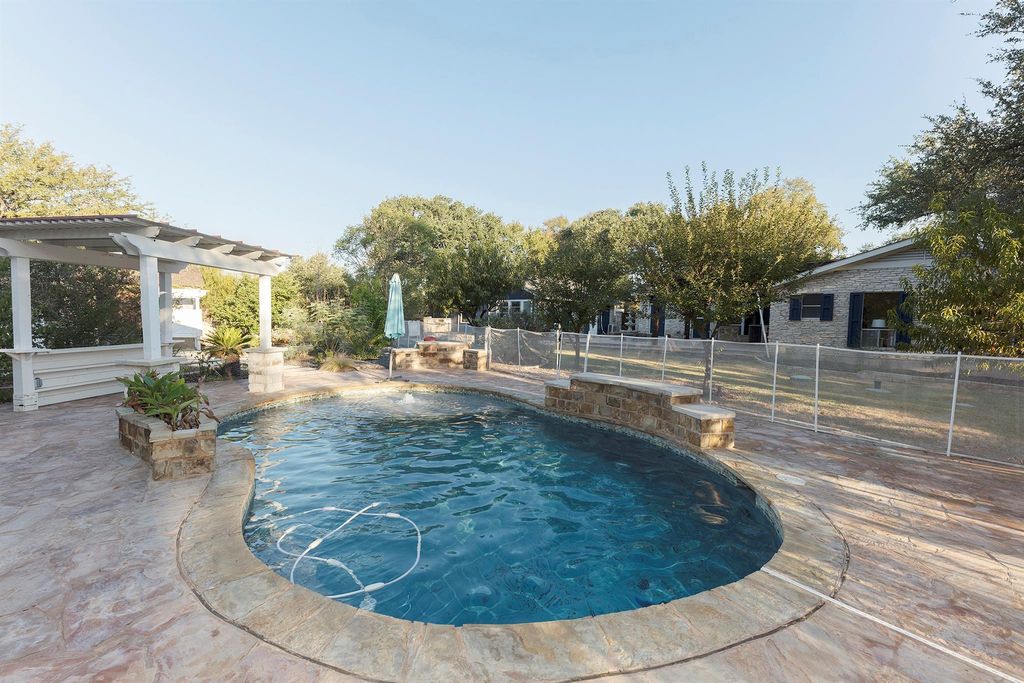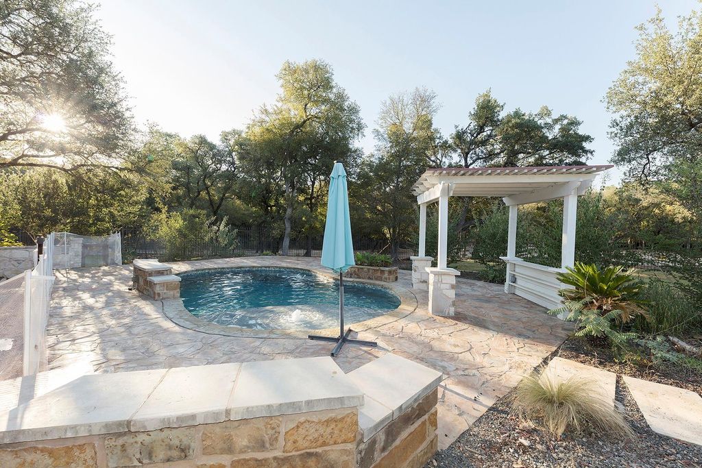 Welcome to 3809 Wyldwood Road, a private Hill Country retreat just minutes from the heart of Austin. Nestled on over three acres of lush, tree-covered land, this serene property blends modern updates with natural beauty, offering a lifestyle that feels both secluded and connected. The main home and guesthouse have been meticulously maintained and thoughtfully improved. A new roof with architectural shingles was added in 2021, and the property features a recently built pool (2020), extensive retaining walls and drainage systems along the creek, and a well with new pumps and a 5,000-gallon storage tank installed in 2022. The home's outdoor spaces shine with added lighting, Wi-Fi-enabled irrigation, and multiple entertaining areas, including a pergola, ball wall, and basketball court. Inside, you'll find a comfortable, updated layout with newer LG appliances, a 2022 water heater, and a whole-home water softener and filtration system. The guesthouse is equally well equipped, featuring a mini-split with heat (2024) and a tankless water heater (2022), making it perfect for guests or multi-generational living. Every detail has been considered for comfort and peace of mind, from the 2023 electrical panel upgrade with a transfer switch for a generator to the septic system's recent performance test and pump service. The property also boasts fruit-bearing peach, plum, apple, and persimmon trees, as well as colorful bluebonnets and wildflowers that bloom year after year. This one-of-a-kind property combines the charm of country living with the convenience of modern upgrades a true Austin sanctuary ready to be enjoyed.