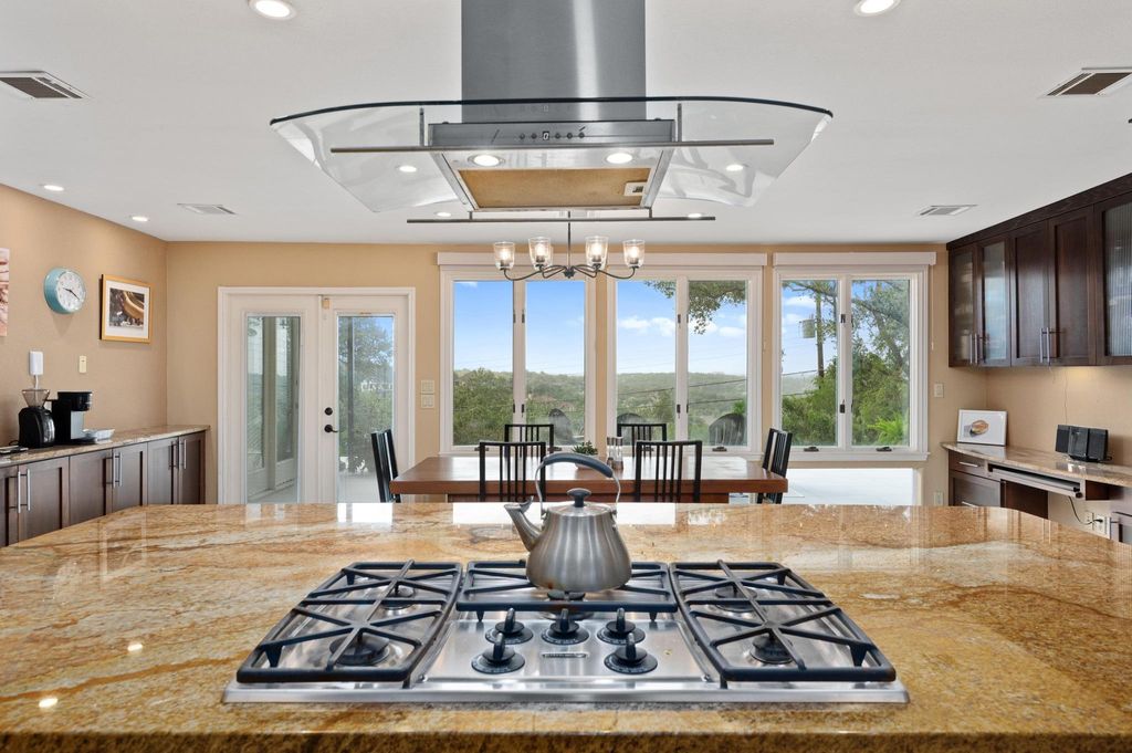 Perched above the Hill Country treetops, 6507 Mesa Drive offers nearly 5,000 square feet of thoughtfully designed space, skyline views, and a layout ideal for multi-generational living. Major updates include a new roof (2024) and four HVAC units replaced between 2019 and 2022, giving buyers peace of mind from day one. This 5-bedroom, 4-bathroom home delivers panoramic greenbelt vistas and an obstructed peek at downtown Austin, framed by mature oaks and a terraced backyard built for entertaining. From the curb, you're greeted by a circular drive, modern glass-panel front door, and custom steel planter boxes that set the tone for the warm, earthy textures throughout. Inside, the open-concept living area flows around a slate-tiled fireplace and into a chef's kitchen with granite counters, mosaic backsplash, oversized island with gas cooktop, custom cabinetry, and built-in appliances. Walls of windows flood the living, dining, and kitchen with natural light and highlight the sweeping views beyond. The main-level primary suite features peaceful backyard views, double French doors, and a spa-like ensuite bath. Upstairs includes two large bedrooms, a bonus/game room, and a guest suite or teen retreat with private bath. Four of the five bedrooms"”including the primary"”all enjoy treetop or skyline views and are situated away from Mesa Drive for added quiet and privacy. Additional highlights include a dedicated main-level office, oversized 2-car garage with wood-tone doors, and zoning to top-rated Doss, Murchison, and Anderson schools. Located just minutes from The Domain, Arboretum, and downtown, this is Austin living with room to grow and a view to match.