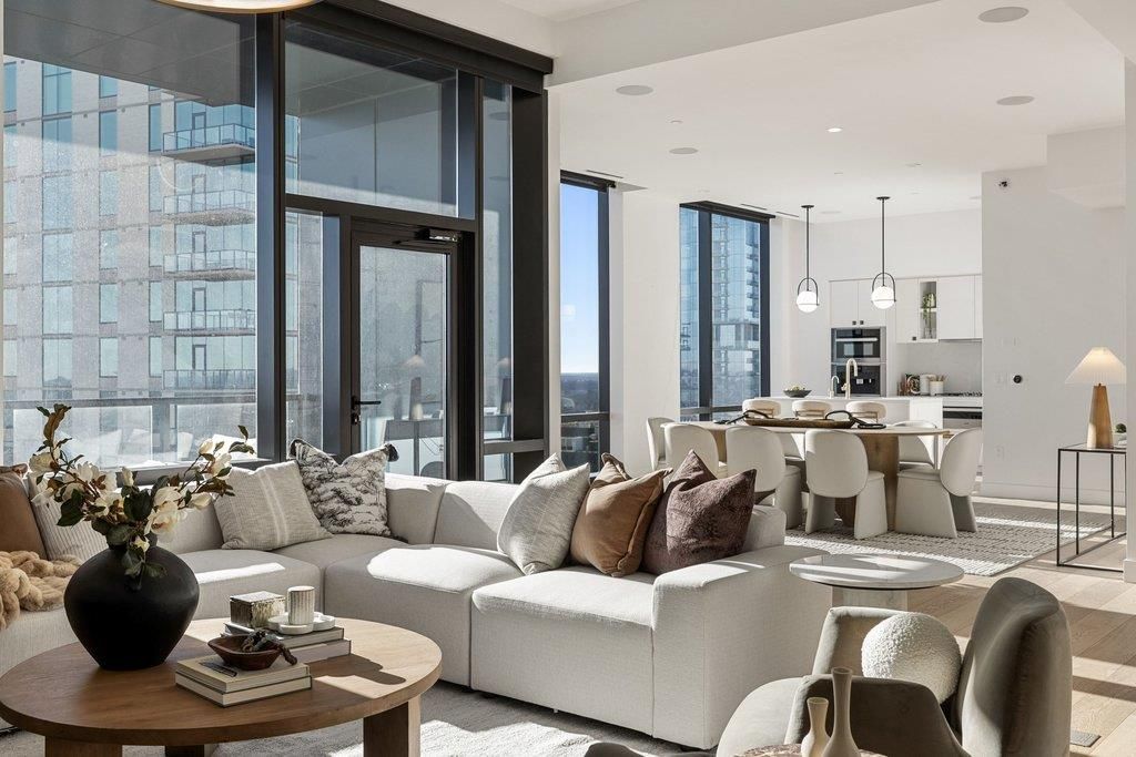 A rare opportunity to own a townhouse in the sky. Luxury three story penthouse living in the heart of Rainey Street with outdoor space on every floor, including a private rooftop terrace. Floor-to-ceiling glass, expansive skyline, and multiple living/entertaining zones. 3 beds, 3 full + 2 half baths, and 3 garage spaces in a full-service building with concierge, fitness center, pool/spa/sauna, and theater room.