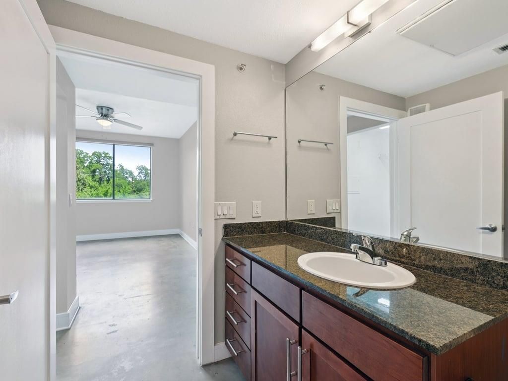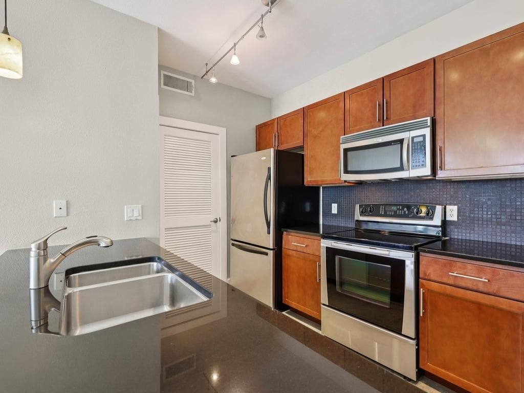 Located in a prime central Austin corridor, this residence offers a well-balanced layout with fresh interior finishes. The entry opens into a bright living area featuring large windows and smooth flooring that flows throughout the space. Just off the living room, the kitchen offers functional design with ample cabinetry, solid countertops, and a compact footprint that maximizes efficiency. The hallway leads to the spacious primary bedroom, complete with generous closet space and nearby access to a full bath. Positioned on the second level, the unit enjoys elevated privacy and a quiet atmosphere. Exterior access is secure and well maintained, with covered walkways and gated entry. Situated near UT, parks, and transit, this property is an excellent fit for low-maintenance living in a central location.