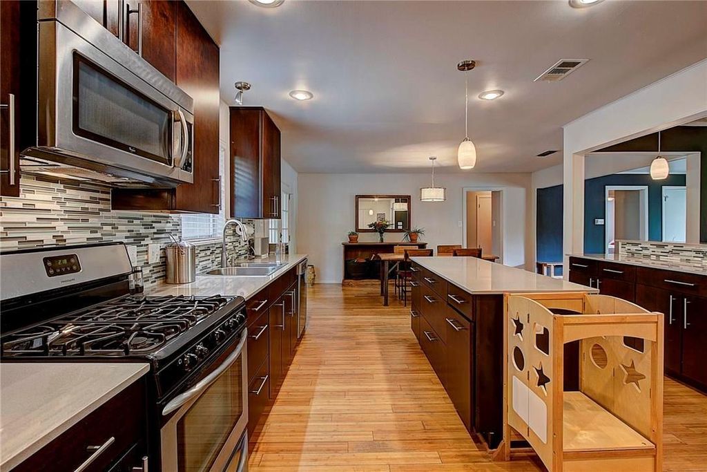 Located in the desirable Delwood area, this charming home features a great layout and an updated kitchen. Wood floors, Remodeled kitchen, Silestone countertops, Stainless appliances, Recessed lighting, Brushed nickel fixtures, and plenty of storage. Modern updates + retro charm. 1/2 mi to Bartholomew Park/Pool, Mueller Shops. Easy access to the Mueller Development, Restaurants, and Shopping nearby. Centrally located just minutes to downtown and a short distance to public transportation.
