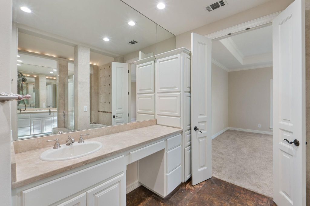 INTERIOR | Bar, Beamed Ceilings, Breakfast Bar, Ceiling Fan(s), Coffered Ceiling(s), Crown Molding, Double Vanity, Eat-in Kitchen, Granite Counters, High Ceilings, High Speed Internet, Kitchen Island, Master Downstairs, Open Floorplan, Pantry, Recessed Lighting, See Remarks, Smart Thermostat, Soaking Tub, Stone Counters, Storage, Walk-In Closet(s), Wet Bar |