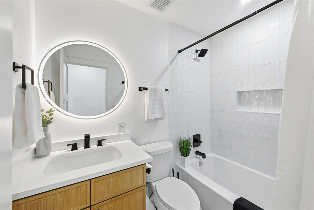 ***Beautiful Creek behind the fence line. Agent has a familiar relationship to the Owner of the LLC** Tucked at the crossroads of Allandale and Crestview"”two of Austin's most beloved neighborhoods"”this fully reimagined 3-bedroom, 2-bathroom stunner has been taken down to the studs and thoughtfully rebuilt with style, substance, & soul. Every inch of this home reflects modern elegance & functional design, offering a turnkey lifestyle in a location that's hard to beat. Just minutes from The Domain, Q2 Stadium, and a vibrant array of Austin's top-rated restaurants, breweries, and boutiques, this gem delivers the perfect fusion of charm, convenience, and community. Inside, the living room features a pitched ceiling with a large picture window that fills the space with natural light, complemented by recessed lighting & luxury vinyl plank flooring. The open-concept layout connects the spacious dining area to a modern kitchen equipped with waterfall quartz countertops, white cabinetry, a black undermount sink, & stainless steel appliances. All three bedrooms offer recessed lighting, ceiling fans, & generous closets. Both bathrooms offer a seamless design with quartz countertops & a neutral finish. A full laundry room and drop zone off the garage add everyday functionality. Out back, the fully fenced yard with a new horizontal wood fence is a blank canvas"”ready for turf, sod, or low-maintenance landscaping. Whether you're catching an Austin FC match, browsing local markets, or enjoying craft cocktails with friends, this location delivers the very best of the city"”right at your doorstep.