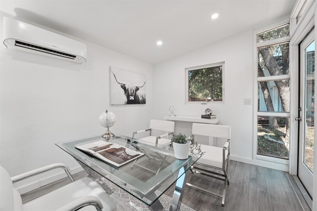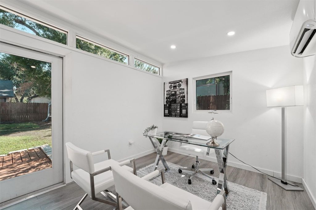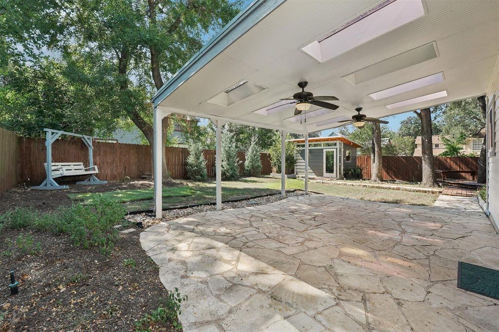 Truly one-of-a-kind, this property shines with over $200K in recent updates! The craftsmanship is evident throughout, from the stunning 2024 kitchen and bathroom remodels to the hardwood floors, modern lighting, and stylish fixtures. Major upgrades within the past two years include a new roof and gutters, Hardie Plank siding, energy-efficient windows, and even new garage doors - giving you peace of mind for years to come. In 2021, a finished backyard flex building adds 120 sqft of living space, complete with heating, cooling, and abundant natural light - ideal for a studio, office, gym, or game room. Outdoor living is just as impressive, featuring two covered patios overlooking a tree-shaded corner lot, with stone pathways and garden beds filled with lush Texas native landscaping. The location is just as exceptional: nestled on a quiet interior street only a few blocks from a highly-rated RRISD elementary school, HEB, Starbucks, Sangam, Chipotle, Little Woodrow's, and more. Enjoy quick access to the new Apple campus (just over half a mile away), scenic hike & bike trail, and Rattan Creek Park with playgrounds, tennis and sport courts, and a Jr. Olympic-sized pool heated year-round. Positioned in NW Austin's thriving tech corridor, this home also offers unbeatable convenience to major employers, highways, and endless shopping, dining, and entertainment - with The Domain just 10 minutes away!