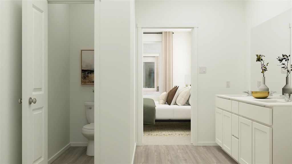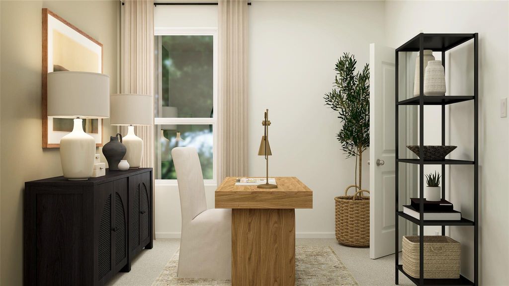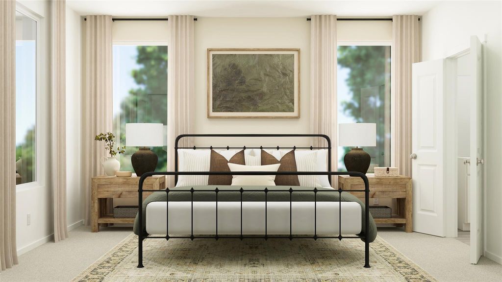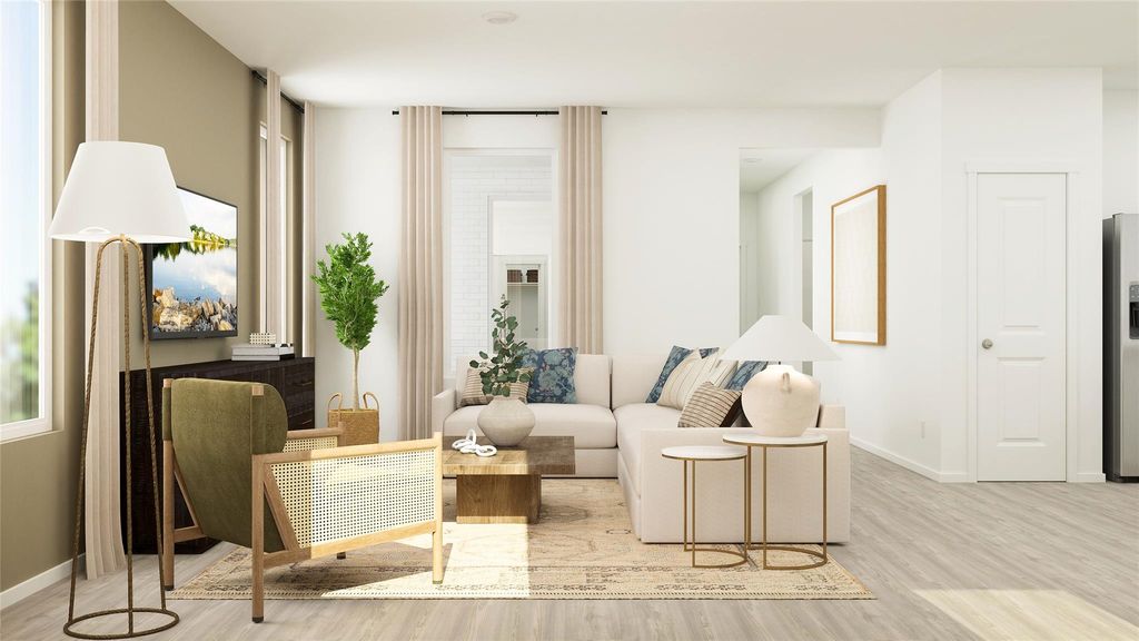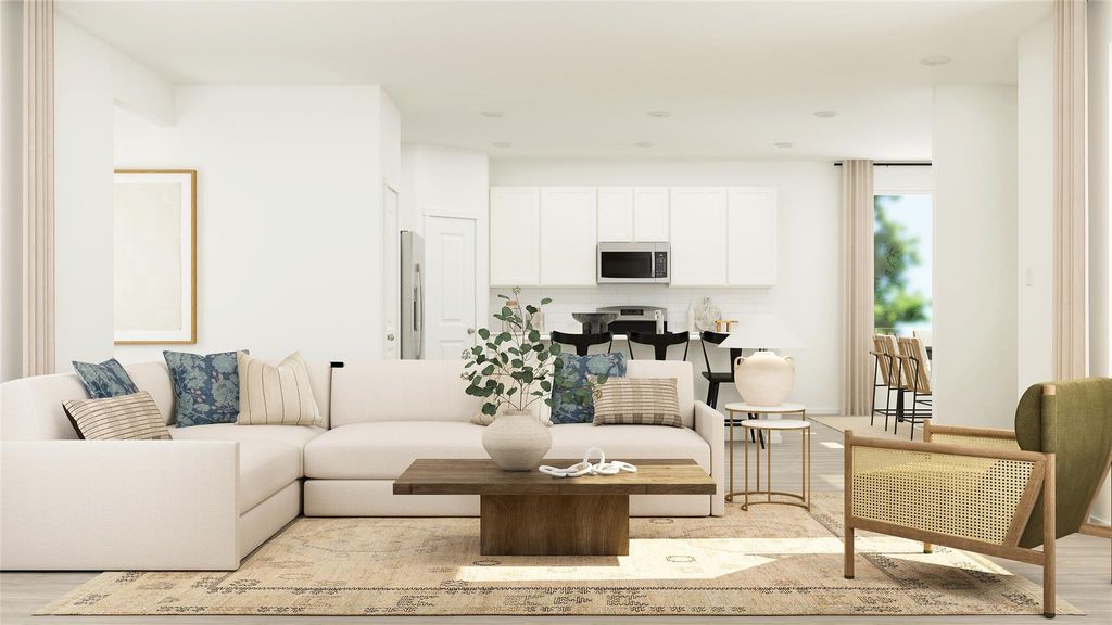 The Camila - This new three-bedroom home offers convenient single-story living. A spacious and flexible open-concept floorplan boasts access to a covered patio for simple indoor-outdoor living. All three bedrooms are located at the back of the home, including the lavish owner's suite with a spa-inspired bathroom and walk-in closet. A rear two-car garage completes the home. Photos are for illustrative purposes only. Estimated Completion January 2026.