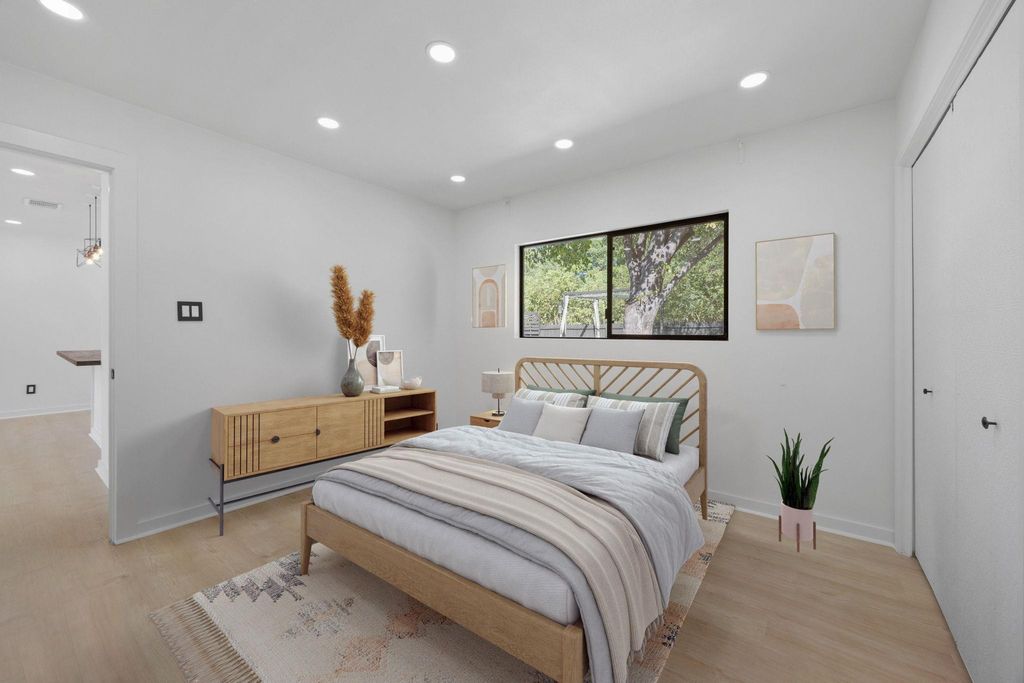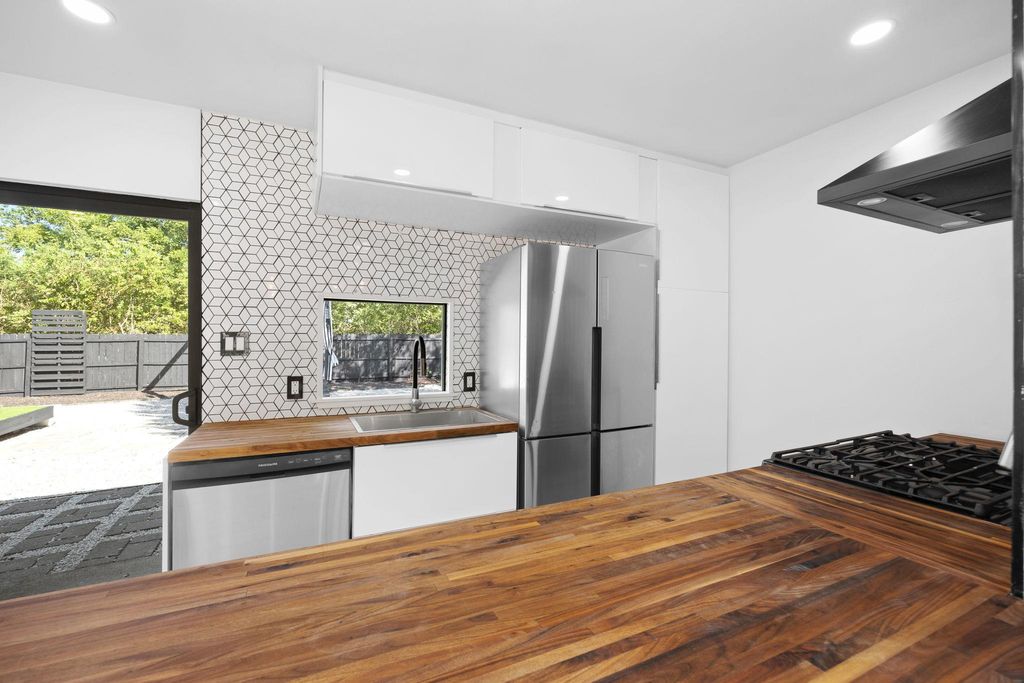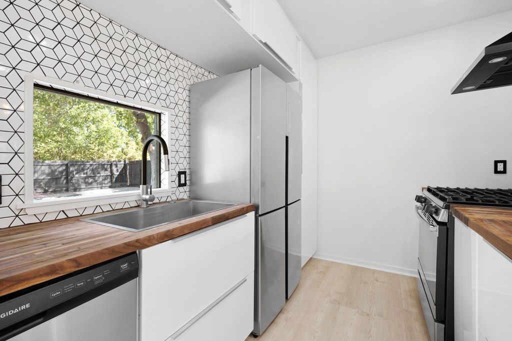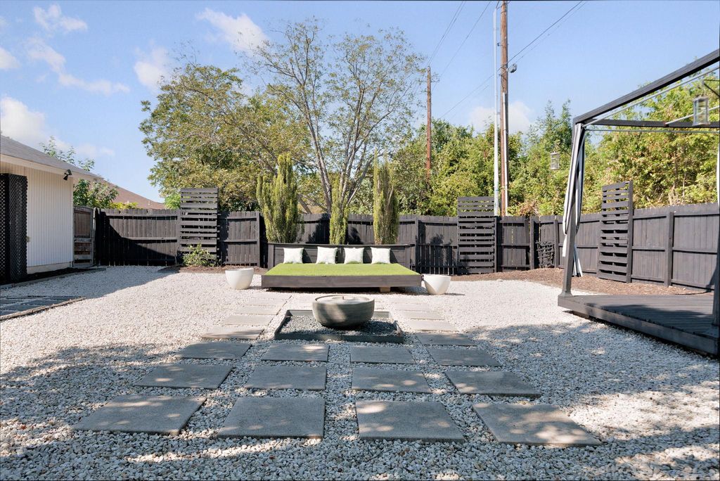 Fully renovated in 2018 and refreshed in 2025, this 3-bedroom, 2-bath home blends clean modern design with the space and privacy rarely found in South Austin. Every room and outdoor area has been thoughtfully reimagined for natural light, comfort, and connection. Inside, Shoji White and Greek Villa paint from Sherwin-Williams' Emerald line set a soft, refined backdrop. Nordic Oak LVP flooring runs throughout, complementing the open layout and large picture-frame windows that flood the home with light. The kitchen features fresh butcher block countertops, a modern tile backsplash, and all appliances included (refrigerator, dishwasher, washer, and dryer). The primary suite offers a retreat-like experience with a double walk-in shower featuring a rainfall showerhead and full-length tile bench. Both bathrooms are fully updated with modern fixtures and clean finishes. Outside, the professionally designed, one-of-a-kind backyard is fully xeriscaped and irrigated, featuring a mature grapevine, flowering jasmine, a floating deck, and a raised 10×10 turf lounge for yoga, sunbathing, or quiet evenings. Tall hedges, privacy fencing, and no rear neighbors make the space feel secluded and serene. Additional highlights include a four-car driveway, full-size front yard, partially finished garage ready for conversion, and a 30-amp exterior plug for an EV or Airstream. Minutes from South Lamar, Central Market, and Michelin-rated BBQ, this home is move-in ready and designed for effortless Austin living.