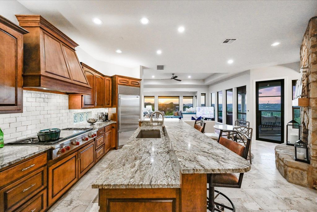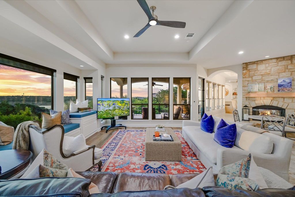 LAKE TRAVIS IF FULL! BUYERS, YOUR MOVE! A Refined Lakeside Retreat with Panoramic Views of Lake Travis. Nestled in the tranquil hills of Lakeway, just 45 minutes from the vibrant energy of Downtown Austin, this exceptional 3,119-square-foot residence offers a perfect balance of refined luxury & natural beauty. Recent storms have replenished Lake Travis to full levels, & this home captures its brilliance w/ unobstructed panoramic views of the lake & surrounding Hill Country. Thoughtfully renovated throughout, this home is designed for effortless living & entertaining. The open-concept floor plan seamlessly connects the living, dining, & kitchen spaces, creating an inviting atmosphere for both intimate evenings & lively gatherings. Walls of windows capture postcard sunsets, flooding every room with natural light and stunning views. At the heart of the home, the gourmet kitchen has been beautifully reimagined w/ high-end appliances, designer finishes, & a refined elegance that elevates daily living into a culinary experience. Each of the three spa-inspired bathrooms features sleek fixtures, modern design, & thoughtful details, while a temperature-controlled wine room adds an indulgent touch for enthusiasts & collectors alike. Step outside to expansive multi-level decks"”ideal for entertaining, unwinding, or simply savoring the tranquil scenery. A large yard offers ample room for play or the addition of a custom pool, further enhancing the property's resort-like appeal. Practicality meets luxury w/ an oversized two-car garage providing abundant storage & space for outdoor gear. The home's location places you minutes from marinas, world-class golf courses, hiking trails, & endless lakeside activities, all within the award-winning Lake Travis ISD. With a low tax rate & no HOA fees, this property is both a smart investment & a serene retreat. This is more than a home"”it's a lifestyle. A sanctuary where every sunset feels like a getaway and every day feels extraordinary.