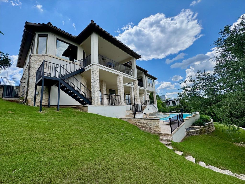 Discover luxury hilltop living in this spectacular greenbelt home, offering breathtaking panoramic hill country views. Thoughtfully designed with a coveted flipped floor plan, the main level boasts soaring ceilings, an abundance of natural light, and an effortless open flow perfect for entertaining. Enjoy multiple balconies and generous outdoor spaces that overlook the sprawling yard and resort-style swimming pool. The updated entertainer's kitchen features a center island, breakfast bar, commercial-grade appliances, dual ovens, and ample cabinet space. The oversized owner's suite is a true retreat, complete with a private sitting area, cozy fireplace, and a spa-like bath featuring dual vanities, a soaking tub, and a walk-in shower with multi-body spray heads. The lower level offers four spacious bedrooms, three additional bathrooms, a dedicated homework station, extra storage, and a large game room that opens to the covered patio and pool area. A bonus flex space is perfect for a home gym or pool house. Nestled in a peaceful Westlake neighborhood, this home is minutes from Austin Country Club and the vibrant shops and restaurants of Davenport Village. Zoned to the highly acclaimed Eanes ISD, one of the best school districts in Texas, this is an incredible opportunity to own a stunning home in one of Austin's most desired neighborhoods. Now is the time to take advantage of this unparalleled offering! Schedule your private tour today!