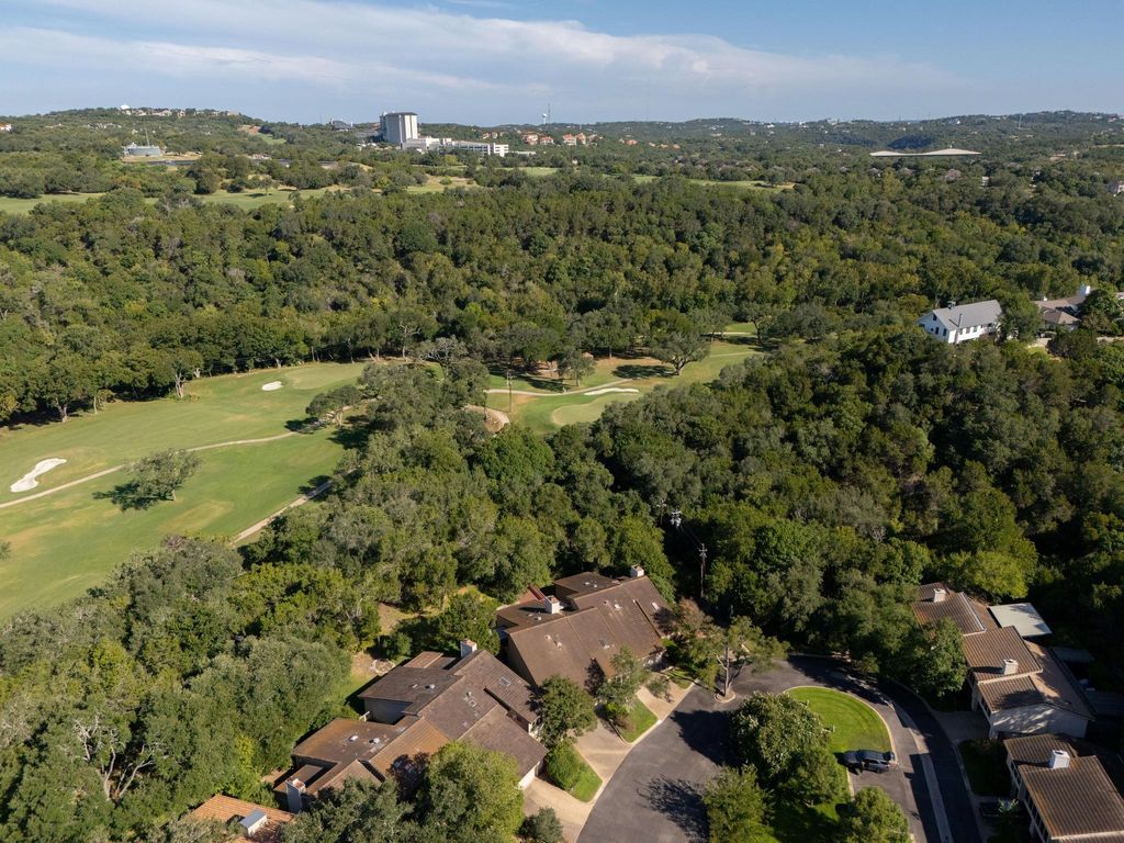 The owner has done a lot of the heavy lifting for a new buyer. Freshly updated and move-in ready, this end-unit condo backs onto the fairways of WCC golf course and is very private. Recent updates include popcorn ceiling removal, fresh paint, upgraded flooring, modernized hardware, light fixtures, and ceiling fans to elevate style and comfort. Perfect for entertaining with a large living/dining area, fireplace, wet bar, and sliding doors opening to an oversized deck. Perfect for entertaining, the home features a spacious living/dining area with fireplace, wet bar, and sliding doors opening to an oversized deck. The generous primary suite has abundant natural light, a walk-in closet, and an ensuite with double vanities and a separate tub/shower. The guest suite has 2 large closets and a connected office with built-ins offers plenty of flexibility. Choose whether you would like your laundry in the garage or an inside laundry room. There is plenty of storage inside and in the garage! Located in the private Woodslopes community with a pool and plenty of guest parking, this property is ideal for families starting in Eanes ISD, downsizers, or anyone seeking a luxurious second home in the heart of Austin. Truly a beautiful complex with lots of green space, pool and privacy.