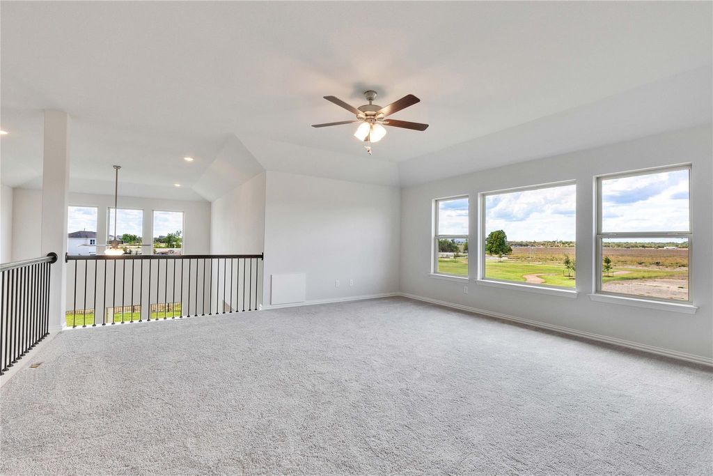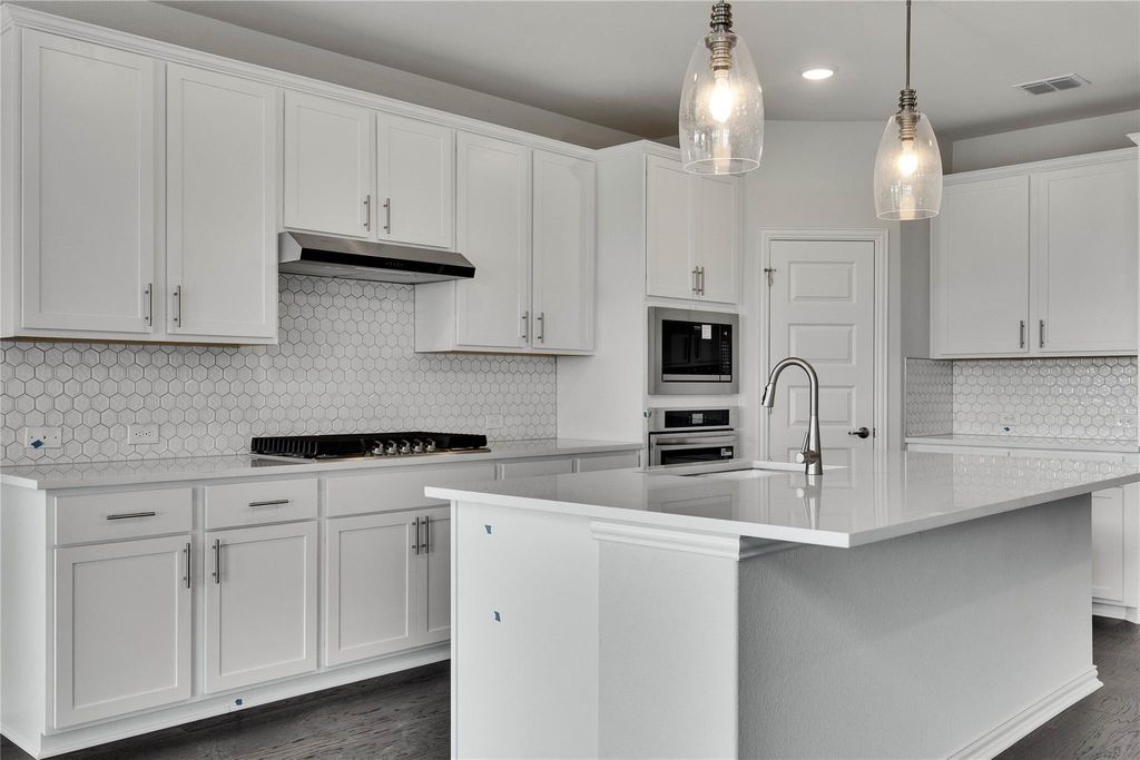 The only community within walking distance to Lake Pflugerville and easy access to 130. The Only 5-Bedroom Home Available for a Quick Move-In - Facing Northeast. Welcome to Preserve at Lakeside Meadows, Pflugerville's newest master-planned community! This beautifully designed two-story home offers 5 spacious bedrooms, 4 full bathrooms, and a versatile game room, perfect for entertaining or relaxing with family. Upon entry, soaring 18-foot ceilings in both the foyer and family room create an open and inviting atmosphere. The gourmet kitchen is a chef's dream, featuring a 36" cooktop, vent hood, stainless steel single bowl sink, quartz countertops, and white shaker-style cabinets with modern hardware. A large island accented with two pendant lights provides the perfect space for gathering. Additional highlights include level 2 wood plank flooring in main areas, metal balusters on the staircase, a gas drop at the patio for outdoor grilling, full gutters, and a pre-plumbed loop for a future water softener. This move-in ready home in Preserve at Lakeside Meadows combines elevated design with everyday convenience. Schedule your showing today!