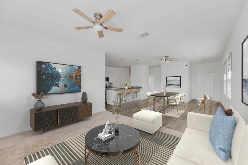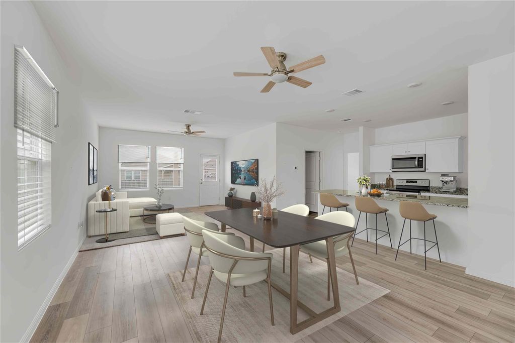 Potential assumable FHA loan with a 2.5% interest rate for qualified buyers! Light-filled and thoughtfully designed, this 3-bedroom, 2-bath home in the heart of Vine Creek offers comfort, convenience, and modern charm. The open floorplan flows effortlessly, featuring wood-look tile and plush carpet flooring. The kitchen is both functional and stylish, boasting granite countertops, stainless-steel appliances, a breakfast bar, and ample cabinet space for storage. The private primary suite includes a spacious walk-in closet and an en-suite bathroom, creating a perfect retreat at the end of the day. Enjoy outdoor living on the covered patio overlooking a fenced backyard"”ideal for relaxing or entertaining. Community perks include a pool, park, playground, and sports courts, with easy access to major freeways, shopping, dining, and local schools. A perfect opportunity in a welcoming neighborhood"”don't miss out!