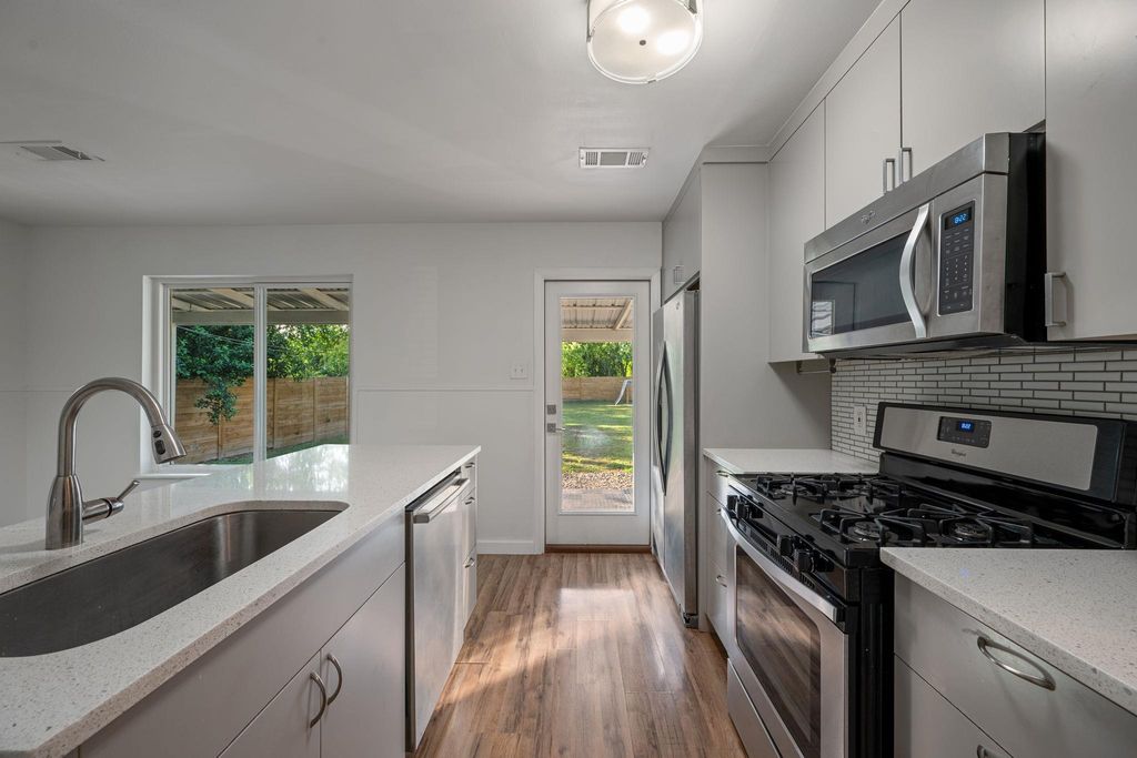 Welcome to the heart of 78704"”Austin's most vibrant and desirable zip code! Nestled on a lush .28-acre lot, this updated South Austin gem offers the ideal mix of charm, modern style, and functionality. This 3-bedroom, 2-bath home features a light-filled open floor plan with designer touches throughout. The living room opens up to the kitchen, which features sleek quartz countertops, stainless steel appliances, a spacious breakfast bar, and a cozy eat-in area"”perfect for morning coffee or dinner with friends. Adjacent is a convenient laundry/mud room for added storage and ease. The two generously sized bedrooms and both full bathrooms have been tastefully updated with modern finishes, offering comfort and style in every detail. Wander outside to your private backyard oasis"”an expansive retreat ideal for entertaining, gardening, or simply relaxing under the Austin sky. Bonus alert! A detached ~192 sq ft studio/office with A/C and heat provides the perfect space for remote work, art, or guest overflow"”plus an attached 8x11 storage space to keep things organized. Recent upgrades include a roof, high-end Bryant Evolution variable-speed HVAC system with REME HALO whole-house UV air purification, new front gutters, tankless water heater, newer energy-efficient windows, and a brand-new Bosch dishwasher. Feeding into highly acclaimed schools"”Zilker Elementary, O. Henry Middle, and Austin High"”this home offers the ultimate in location, lifestyle, and livability. Just minutes from South Lamar, Zilker Park, Barton Springs, and all the iconic eateries and hotspots that make 78704 legendary. Don't miss your chance to own a slice of classic Austin charm with modern upgrades in one of the city's most coveted neighborhoods!