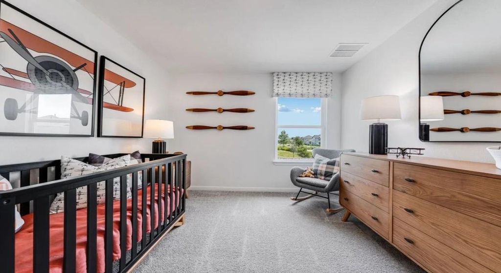 What's Special: Large Kitchen Island | 2nd Floor Laundry Room | Covered Patio. New Construction - January Completion! Built by Taylor Morrison, America's Most Trusted Homebuilder. Welcome to the Kestrel at 14221 Matterod Drive in Longview 40s. This beautiful new home is designed for modern living and effortless comfort. Step through the front porch into a welcoming foyer with a convenient powder room. Continue into an open-concept layout where the great room flows seamlessly into the kitchen with a center island and the dining area, perfect for everyday meals or entertaining. From here, step outside to enjoy the covered patio, an ideal spot to relax. Upstairs, you'll find a spacious game room, three secondary bedrooms, a full bath, and a laundry room. The deluxe primary suite offers a private en-suite bath and a generous walk-in closet for your retreat. This one-of-a-kind community offers incredible amenities, and a location close to the airport, so your next adventure is never far away. Cool off in the beach-entry pool, let kids explore the playscapes, and challenge friends at the pickleball courts or sports field. Stroll or cycle along lush trails, discover the Monarch Butterfly Garden and Rain Gardens, and unwind at beautiful pocket parks. The Amenity Center is the perfect spot to gather and socialize. At Longview, every day feels like a getaway. Additional Highlights Include: Whole house blinds. Photos are for representative purposes only.