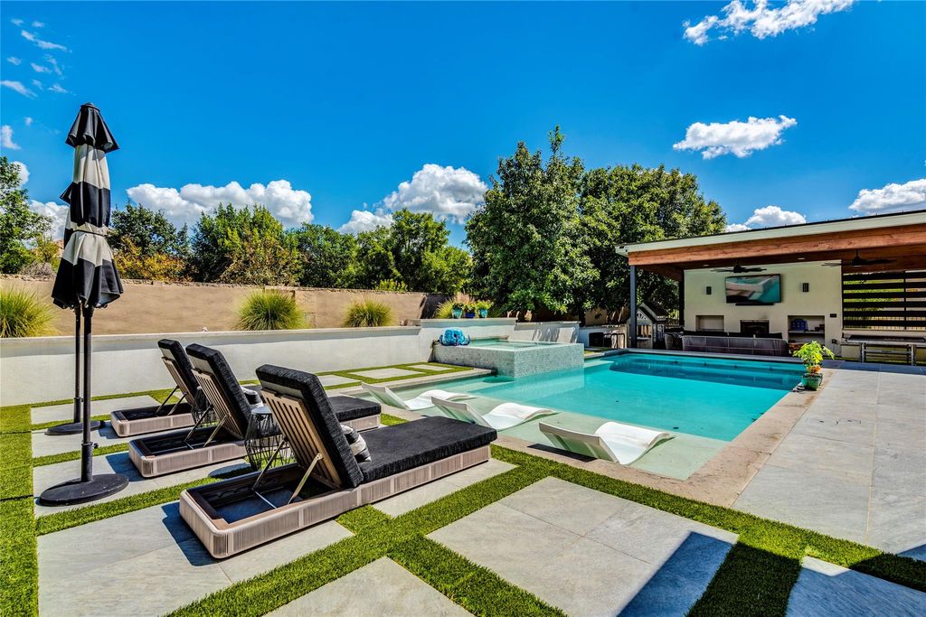 Welcome to 109 Bisset Court. This exquisite 5,282 SqFt residence located in the prestigious community of The Bluffs in Rough Hollow was built in 2019 by Westin Home. The gourmet kitchen is a Chef's dream delight, showcasing an eight burner Wolf Stove, Sub-Zero refrigerator, high-end custom finishes, and a full wet bar. All 4 bedrooms have en suite bath and walk in closets. Located downstairs is a large, dedicated office and workspace. Upstairs boasts a generous media room, along with sizable living/playroom. The current owners have added $265,000 in upgrades including partially enclosing the upstairs living room, replacing all drapes with custom wood shutters, added accent tiles on stairs and showers, tankless water heater, and opening up the living room by installing new, larger sliding glass doors to offer stunning views of the pool. Enjoy relaxing in this backyard private oasis, complete with custom-built pool and spa, outdoor kitchen and dining area, plus a cozy cabana with outdoor fireplace. Rough Hollow offers resort-style living with the Canyon Grille Restaurant situated next to the Marina and Yacht Club on Lake Travis just minutes away, plus many more amenities including tennis, basketball, bocce and pickle ball courts, playgrounds, pools, lazy river, pavilion, fitness center, and 22 miles of scenic hike and bike trails. Voted one of the best master planned communities!