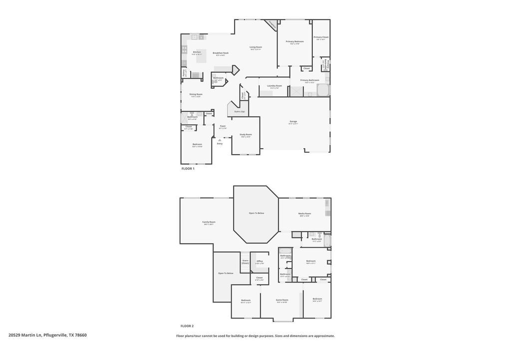 Welcome to 20529 Martin Ln; a beautiful 2 story home situated on a .33 acre corner lot in the desirable Park at Blackhawk community! Incredibly spacious and functional floor plan featuring a study, formal dining, primary suite, and in-law suite on the main level plus a game room, media room with mini kitchen, children's retreat, and a dedicated workspace with built-in desk & cabinets upstairs. Beautiful architectural and upgraded design details throughout including brick, wood & tile feature walls, built-in storage & entertainment nooks, elegant coffered ceilings, wrought-iron stair railings, soaring ceilings, and so much more. Gourmet kitchen with granite counters and built-in SS appliances including a 5 burner gas stovetop. Gorgeous glass slider doors open to the expansive covered patio. Impressive outdoor living space complete with tile flooring, an outdoor fireplace, and outdoor grill/BBQ"”perfect for entertaining friends & family year-round! Enjoy the plentiful community amenities including pools, playgrounds, fishing ponds, fitness center, sport courts & more! Easy access to 130 & 45 Tolls and just minutes to shopping, dining & entertainment at Stone Hill Town Center, Typhoon Texas, Lake Pflugerville & more.