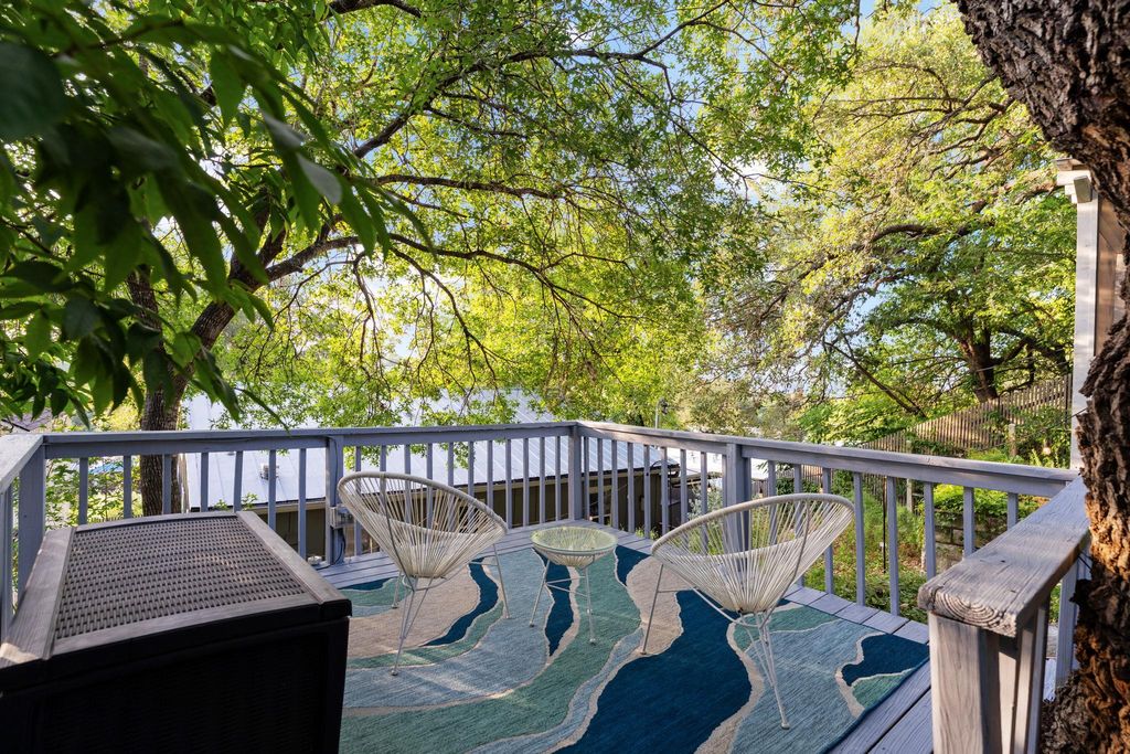 This stunning Travis Heights home has been thoughtfully reimagined from the ground up with high-end designer touches by Erin Williamson (2020/2021). No detail was overlooked. New hardwood flooring, a sleek Bosch-equipped kitchen with custom cabinets and designer lighting, two luxurious spa-inspired bathrooms, Kelley Wearstler and Schumacher wallpaper accents, and a dreamy walk-in master closet. Modern upgrades continue throughout: new doors, baseboards, window treatments, fixtures, tankless water heater, fully finished upper building with sliding doors, plus fresh interior & exterior paint. The improvements didn't stop there; 2022 brought a new fence and gutters, 2023 added a custom screened-in porch, rebuilt decks, and nine native trees for natural beauty and privacy. In 2024, the outdoor living was elevated even further with limestone walkways, a new driveway and carport stonework, stylish new casita stairs, and winding limestone mulch pathways. All this in one of Austin's most coveted neighborhoods"”Travis Heights"”where tree-lined streets meet unbeatable convenience. Stroll to South Congress for dining, shopping, and coffee, explore Lady Bird Lake trails, or be just minutes from Rainey Street, Downtown Austin, and Zilker Park. Perfect timing to catch the sounds of ACL right in your backyard. This home is a blend of designer style, modern comfort, and Austin's vibrant lifestyle.