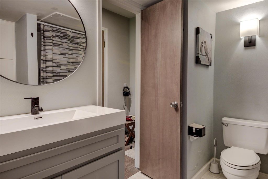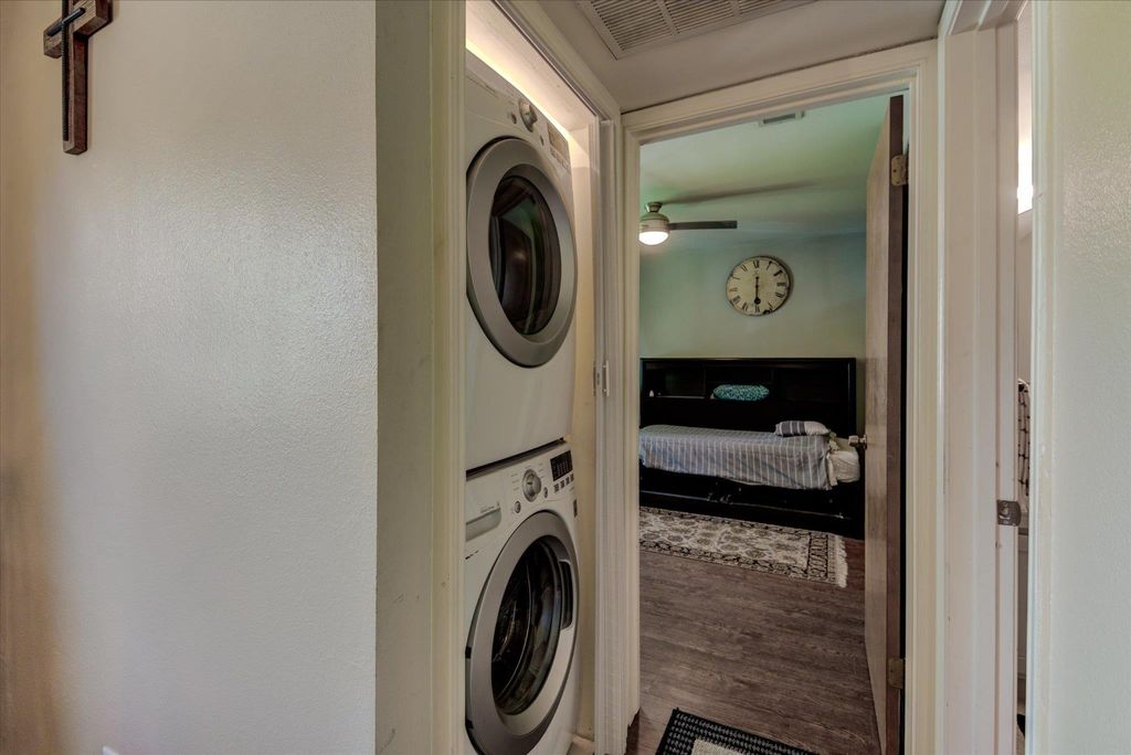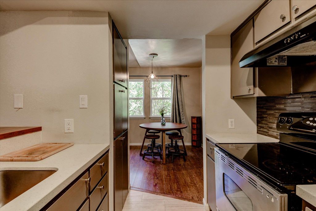 Tucked away in a quiet corner of Northwest Hills, this condo offers peaceful seclusion and unbeatable convenience. Step outside to a spacious covered patio with a retractable shade while overlooking a serene green space dotted with blooming pink and white crape myrtles and a nearby park with a seating area to walk your dog or bask in the sun. Inside, vaulted ceilings and Anderson tilt-out windows bathe the home in natural light. The open living and dining area is anchored by a cozy wood-burning fireplace, while the thoughtfully designed kitchen balances function and style. The primary suite features a generous walk-in closet, and the hallway hosts a convenient stackable washer and dryer. Recent updates include fresh paint, new ceiling fans and towel racks, no popcorn ceilings, and covered parking. With 6 inches of concrete between walls and ceilings, the condo also provides exceptional sound insulation for quiet living. Refrigerator, washer, dryer, and a TV mount will convey. All of this is just 8 minutes from downtown Austin, boat ramps to the lake, and close to the Arboretum, Domain, and Mount Bonnell. This condo is a rare chance to enjoy both tranquility and accessibility in one of the city's most desirable neighborhoods.