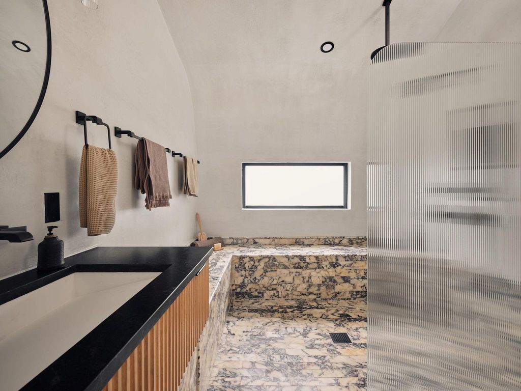 At the intersection of architecture and art, this one-of-a-kind compound in East Austin's sought-after Holly neighborhood is the latest creation from Rabb Construction and Davey McEathron Architecture. This property is a masterclass in sculptural design, natural materials, and artisanal craftsmanship. Terraluz offers 3 bedrooms and 3 bathrooms, plus a detached guest suite/home office with its own bathroom above the garage"”connected by a bridge clad in the new Rock Paper Build tiles from Clay Imports and a suspended hammock net, creating a whimsical and social space 10 feet in the air. Together, the home and suite span 2,140 square feet. The home is defined by sweeping, curvilinear rammed earth walls"”a unique and expressive use of an ancient building technique. These walls help temper the heat of the Western sun and act as tactile, textural elements that soften the facades with their organic curves. A private plunge pool offers the perfect spot to unwind in style. Crowning the structure are barrel-vaulted roofs clad in soft green metal, curving downward to become walls"”emphasizing architectural fluidity and highlighting the homes' sculptural forms. Inside, the interiors are a warm and tactile blend of natural finishes: white oak cabinetry, terracotta, marble, and burnished limewash walls. The polished concrete floors are honed to reveal a terrazzo-like finish, adding texture and durability underfoot. Throughout, custom steelwork and intricate detailing"”hand-forged railings, thresholds, and shelving"”elevate the design to a truly artisanal level. The overall aesthetic is a seamless fusion of desert modernism, Art Nouveau, and organic architecture, brought to life through local craftsmanship and visionary design. Whether you're an artist or a design lover seeking something truly unique, this compound is a rare and inspiring find in one of Austin's most creative, culturally rich neighborhoods.