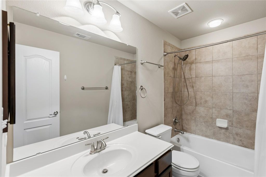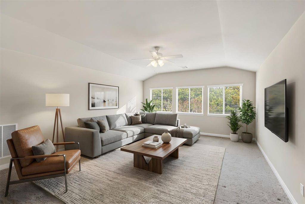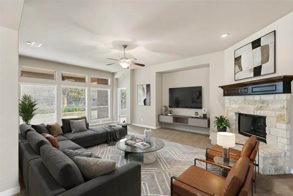 Beautifully maintained and move-in ready, this Falconhead West home offers the ease of primarily single-story living with thoughtful flexibility. The main level features four bedrooms and two baths, while upstairs you'll find a spacious bonus room, an additional bedroom, and a full bath - perfect for guests or a private retreat. The bright family room showcases a stone corner fireplace and a wall of windows that fill the space with natural light. The spacious kitchen, with island, features granite countertops and abundant cabinetry. The private primary suite includes a soaking tub and separate shower. Enjoy low tax rates and exceptional community amenities, including golf access, greenbelts, scenic trails, and playgrounds.