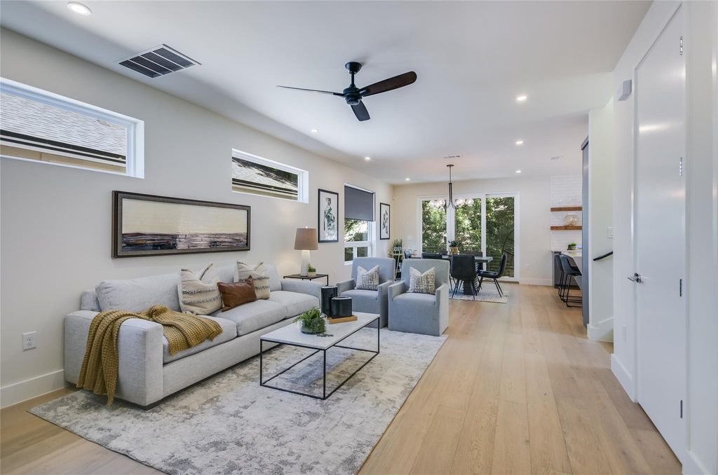 Convenient and Connected! Modern design and PRIME East Austin location in 78702. This 4-bedroom, 3 bath residence blends sophisticated design with everyday functionality, just minutes from Downtown, Lady Bird Lake, and East Austin's best dining, shopping, and nightlife. Inside, you'll find a light, bright, and open layout with one guest suite downstairs and 3 bedrooms + loft upstairs. Designer touches include light oak flooring throughout--NO CARPET, designer lighting on dimmable switches, a gourmet kitchen with large center island, tall cabinets with under cabinet lighting, and large slider doors that open to the gorgeous and private, fenced back yard. The low-maintenance, drought-conscious backyard with towering trees, astroturf and composite deck offers the perfect space for enjoying time with friends, pets, and having fun. Back inside, three additional bedrooms are upstairs including the owner's suite with two separate walk in closets and luxury bath with walk in shower and soaking tub. Upstairs, there are two additional bedrooms, full bath, loft area, and giant storage closet. Parking includes an attached 1 car garage with opener and driveway parking. For outdoor enthusiasts, the Boggy Creek Greenbelt Trailhead is at your front door! Zaragosa park (with swimming pool and baseball field) is 2 blocks from the house. Have a ton of FUN walking to nearby eateries and entertainment including Fleet Coffee, Joe's Bakery, Murray's Tavern, Kitty Cohen, and P-Terry's---all within a 2 block walk from the house. HEB is a 4 block walk. This is a great opportunity to own a timeless, move-in-ready home in one of Austin's most dynamic and desirable neighborhoods.