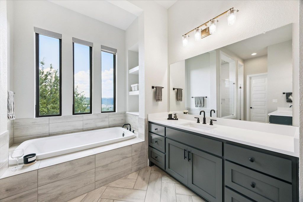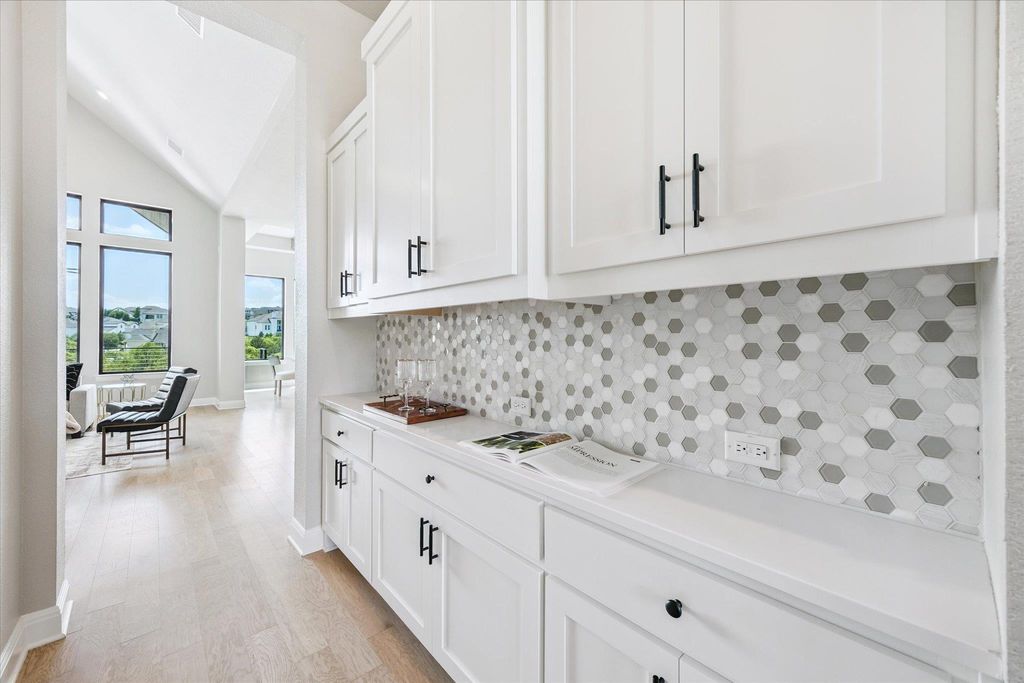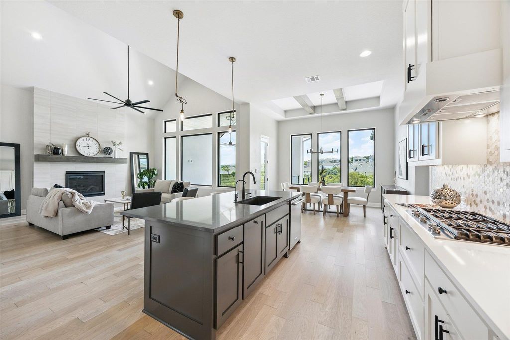 Back on Market after 25k+ in updates and repairs! Sitting on one of the most coveted streets in all of Travisso, this Drees Brothers Custom home is the pinnacle of luxury design and thoughtful architecture. On the main floor, you'll find a dedicated office space, massive primary suite, and one additional bedroom with its own ensuite bath. Elegant, oversized windows fill the living area with high ceilings that provide unparalleled natural light. The chef's kitchen with walk in pantry flows perfectly with the open concept for preparing meals and entertaining. Right off the kitchen, the first patio provides an incredible view to watch hill country sunsets over the vista. Heading downstairs, you'll be immediately greeted by the 2nd full kitchen with bar top right next to the patio entrance. Additionally, you'll find three more bedrooms, one with an ensuite bath. Another massive flex space can also be used for a movie room, kids play spot, or workout area. Stepping onto the patio, you'll be met with incredible views right from the lounging on the deck or while relaxing in your custom pool and spa. Enjoy the four car garage this home features for to house all your vehicles or use as extra storage. Already being one of the most sought after neighborhoods in Central Texas, this home offers a luxury living experience with well planned functionality.
