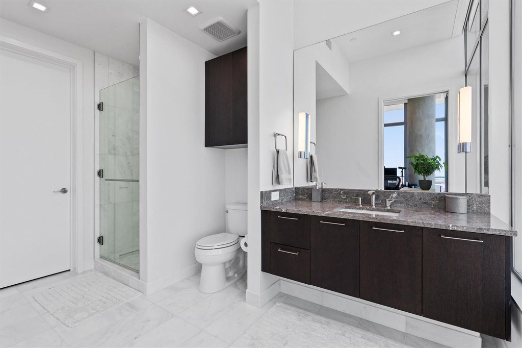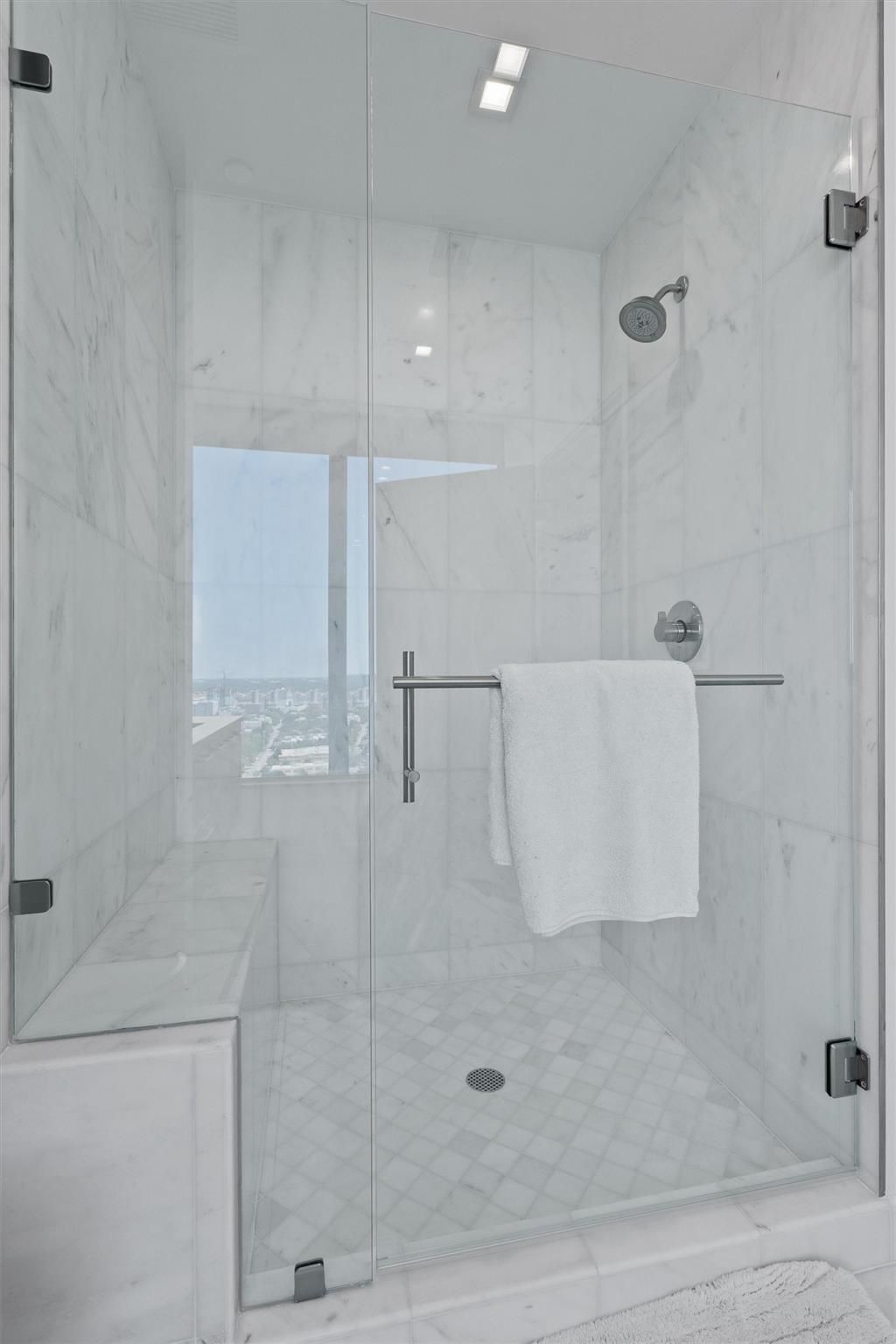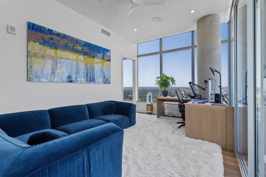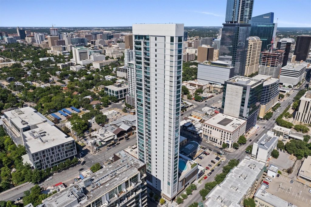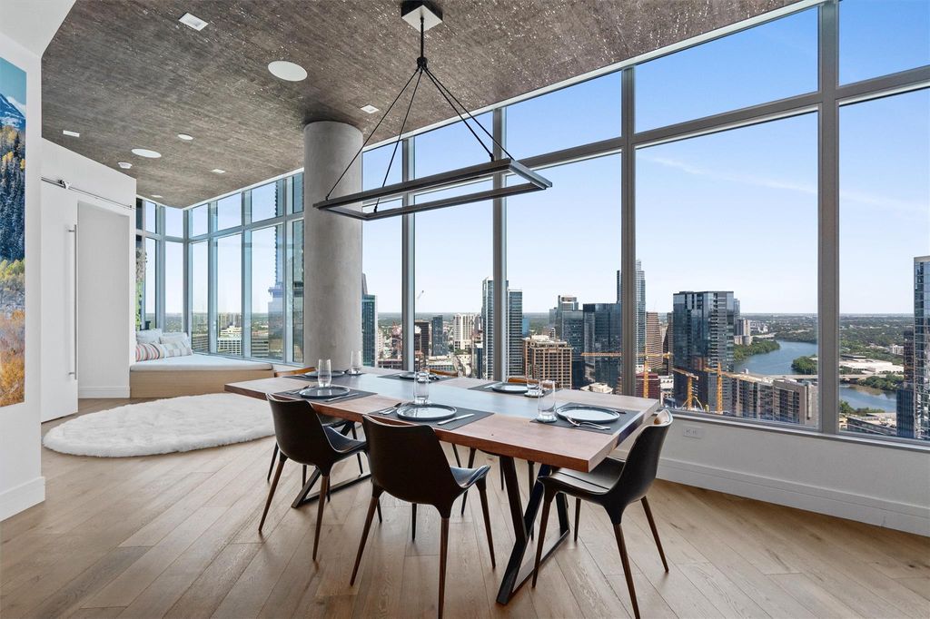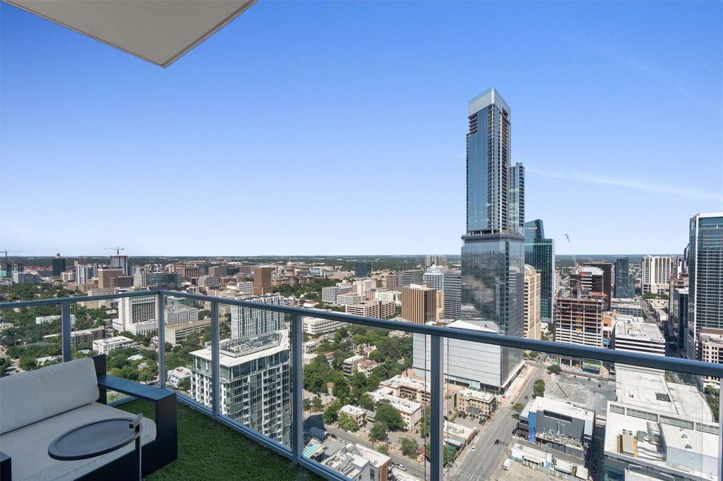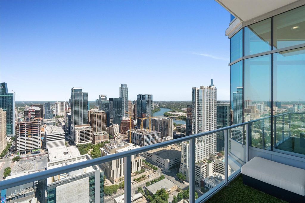 Experience unparalleled luxury in this northeast-facing 38th floor penthouse at the prestigious Fifth & West Residence Tower in downtown Austin. This elegant 3-bedroom, 3.5-bath residence boasts floor-to-ceiling windows with breathtaking views of Lady Bird Lake, the Capitol, and the hill country. Watch the sunrise over the lake from the comfort of your living room. The exquisite kitchen, featuring Miele appliances and marble countertops, flows seamlessly into spacious living areas, perfect for entertaining. The owner's suite offers a private balcony, spa-like bath, dual closets, and a dressing area. The junior penthouse features double pane windows, cork ceilings, and a built in sound system to create a serene and peaceful space. With three reserved parking spaces and access to exclusive amenities, this home exemplifies modern sophistication.