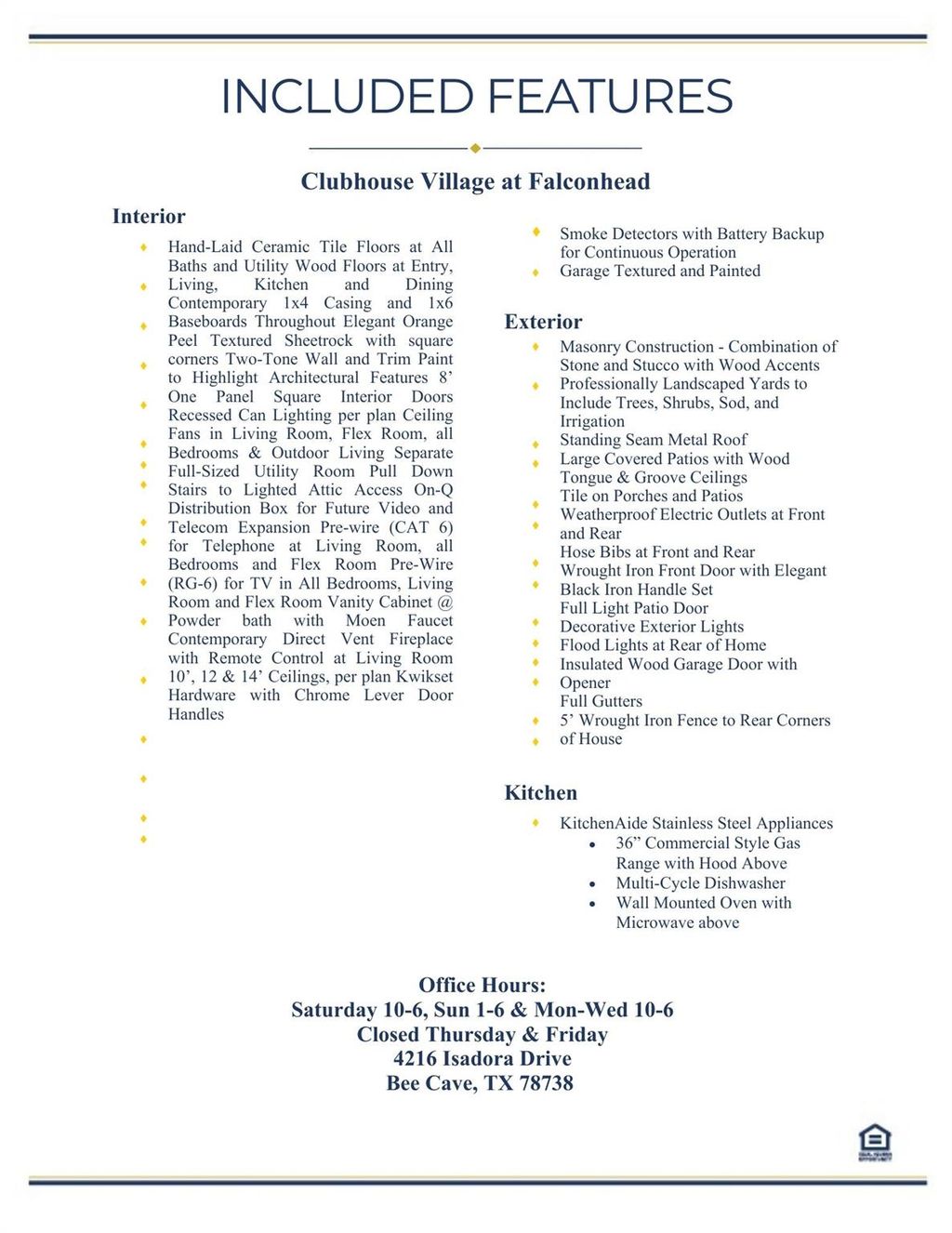 ** No Showings Until December 6th**Stunning Home in Clubhouse Village Welcome to this exceptional 3-bedroom, 3-bathroom residence, featuring an additional bedroom with an ensuite bath, perfect for guests or family. This beautifully designed home offers 2,391 square feet of thoughtfully planned living space, ideal for both relaxation and entertainment.Key Features: Dedicated Office: A private workspace designed for remote work or study, ensuring you can focus in a quiet environment. Prime Location: Nestled on the largest lot in Clubhouse Village, this home is situated at the end of a peaceful cul-de-sac, providing privacy with no neighbor on one side. Enjoy serene views as the property backs onto the 18th hole of the Falcon Head Golf Club. Impressive Ceilings: Enjoy the spacious feel with 12 ft ceilings in all living areas and 10 ft ceilings in the bedrooms and bathrooms, creating an airy ambiance throughout. Outdoor Living Space: Entertain guests on the large covered patio, featuring tongue-and-groove wood ceilings, and relax in the beautifully landscaped backyard adorned with mature oak trees that offer shade and timeless charm. Kitchen & Dining: The heart of the home is the open-concept kitchen, equipped with high-end GE Cafe Series appliances, including a 6-burner stove. The kitchen boasts elegant quartz countertops, custom cabinetry, and a large island, making it a chef's dream.Finishes & Amenities: This property is filled with high-end finishes, including striking iron doors that enhance its elegance. The laundry room is super-functional, featuring cabinetry, quartz countertops, a sink, and a convenient mudroom bench.Garage: You'll also appreciate the oversized two-car garage with durable epoxy floors, providing ample space for vehicles and storage.Don't miss the opportunity to own this meticulously designed home in a sought-after location. Schedule a showing today and experience the perfect blend of luxury and comfort!