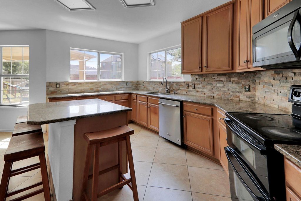 Welcome to this beautifully maintained, move-in ready home located in the highly sought-after Greenridge neighborhood. Located in a cul-de-sac it is a very quiet and serene environment. This residence features recent updates, including brand new flooring on all bedrooms and gaming/family room. Kitchen and master bedroom receive invigorating morning light from the sunrise waking up your senses and setting you up for a pleasant day. The expansive primary suite boasts a generous walk-in closet, with great luminosity while the secondary bedrooms offer ample space. The open-concept kitchen is designed for both functionality and style, featuring a large center island and an adjacent dining area that seamlessly connects for everyday living or entertaining. Just off the kitchen, you'll find a versatile flex space"”ideal for a formal dining room, home lounge, or a cozy speakeasy. Kitchen cabinets feature granite stone tops with a matching dining table and center island. There is also additional cabinetry on the adjacent wall for added storage. At the front of the home, a sizable home office provides the perfect workspace or study, complete with convenient access from the main entryway. Wood flooring adds an elegant and formal touch to this space. Another of the home's standout features is the serene pool space combined with the large deck built for entertainment. The large pool designed for swimming and diving features a brand new vinyl liner ensuring many years of bathing pleasure. Pool features a solar energy system to extend your bathing season for two or three more months of the year! Residents enjoy proximity to top-rated schools, shopping, dining, and more"”offering a perfect blend of comfort, style, and convenience.