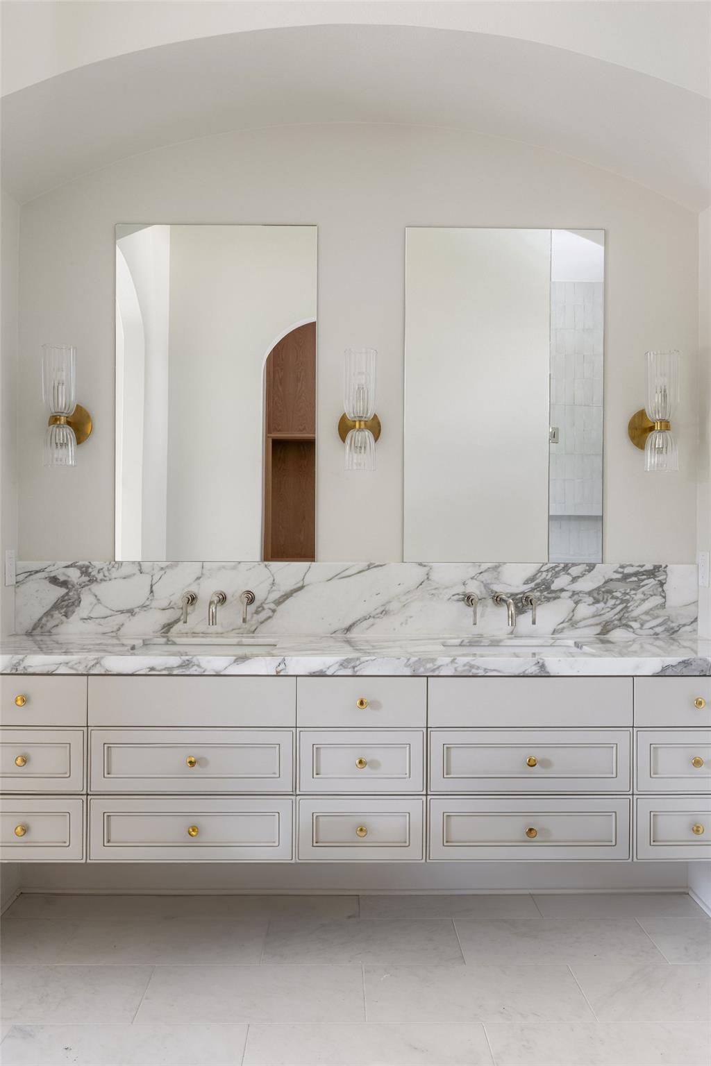 This custom residence pairs luxe design with an ideal layout. Each bedroom has its own bathroom, while three additional spaces"”a generous butler's pantry, mudroom, and upstairs bonus room"”offer the flexibility to spread out and entertain with ease. Set in Cherrywood"”known for its creative energy and walkability to Este, Dai Due, and Patrizi's"”this home is a must-see. Every detail emphasizes durability and safety. The hurricane-rated structure is engineered to withstand 155 mph winds, while fully insulated walls and thermally broken RAM windows enhance energy efficiency. A crushed concrete pad reinforces the foundation, ensuring long-term stability and security. Bold and architectural from the outside, the home opens into an interior that feels airy and elegant. Soaring ceilings, graceful arches, and natural light fill the space while maintaining privacy from neighbors. A gas fireplace adds warmth casting a soft glow that sets the tone for gatherings. At the heart of the home, a chef's kitchen stuns with a Cornufe 110 gas range, polished nickel Perrin & Rowe Georgian Era fixtures & sleek push-to-open white oak and walnut cabinetry. The adjacent butler's pantry, outfitted with a built-in fridge, Zephyr dual-zone wine cooler & expansive prep and storage zones, keeps the kitchen visually clean and ready for hosting. Every cabinet was thoughtfully designed with integrated trash pull-outs, utensil dividers, and concealed organization. The main-floor primary suite is framed by tranquil pool views and features antique gold Rohl fixtures, a freestanding soaking tub, and honed Calacatta Gold Bardiglio marble floors. A custom vanity and brass-framed reeded glass doors add a refined, tailored finish. Step outside to a covered porch and private turf backyard with a serene pool"”an ideal setting for weekend lounging or sunset dinners. An eight foot privacy fence encloses the space, while soffit downlighting and step illumination create a warm glow long after the sun goes down.