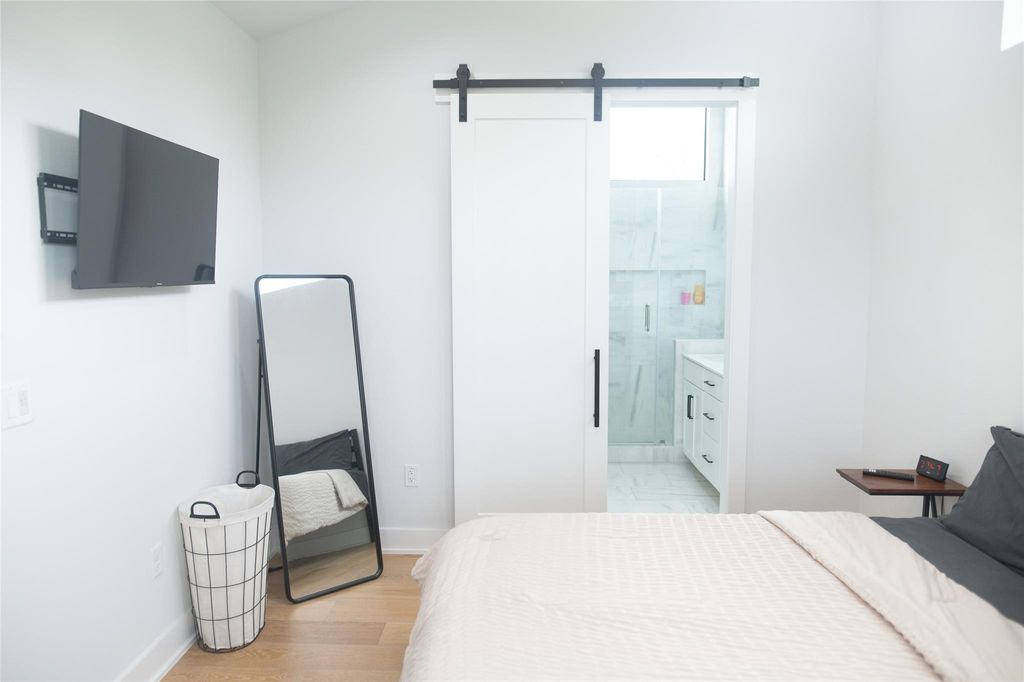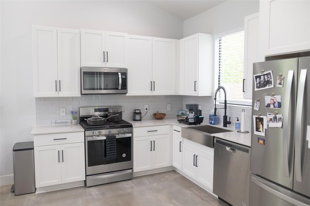 *Pro photos coming in February.* This stylish 2-bedroom, 2.5-bath East Austin home combines modern finishes with thoughtful design. The fenced backyard features a heated cowboy pool, creating a private outdoor retreat. Inside, high ceilings, expansive windows, and 8-foot doors enhance the open, airy layout. The primary suite showcases marble tile, dual vanities, a seamless glass shower, and a walk-in closet, while the guest bath features classic subway tile. Energy-efficient stainless steel appliances, a farmhouse sink, Nest thermostats, barn doors, ceiling fans, and LED lighting add both comfort and sophistication.