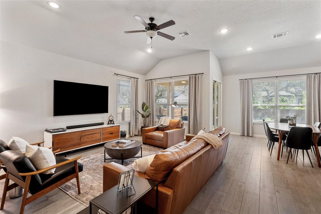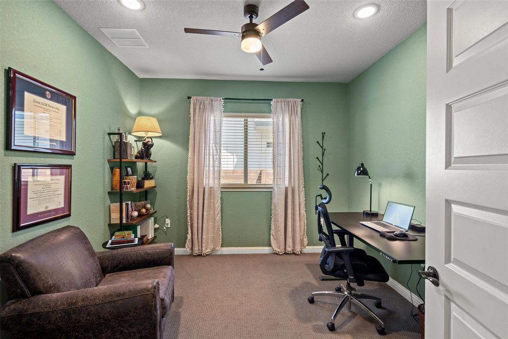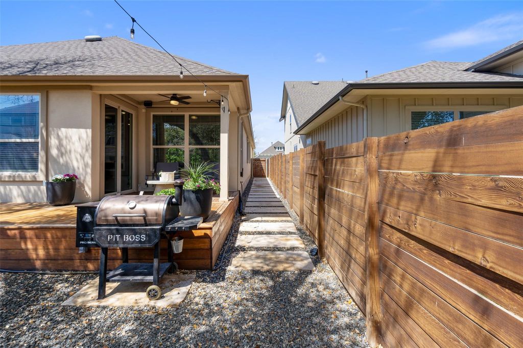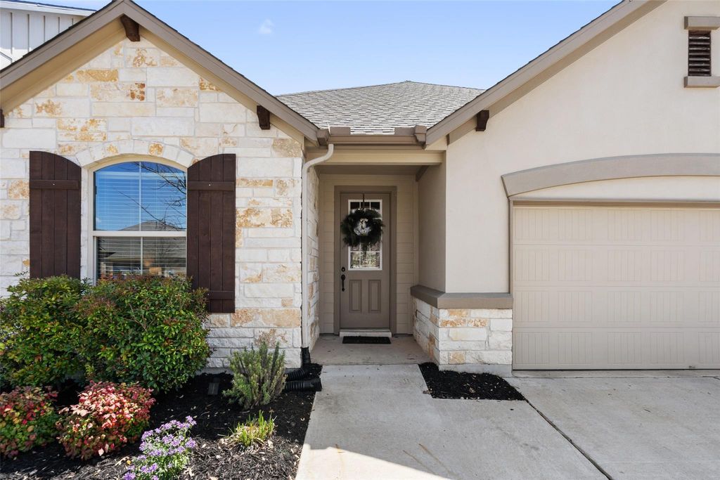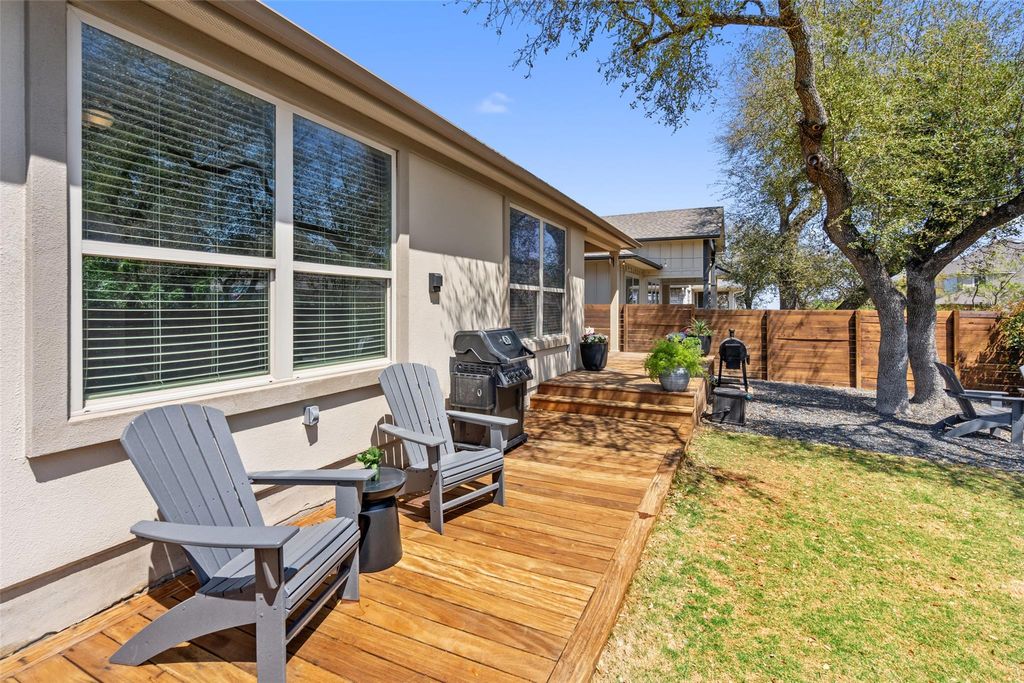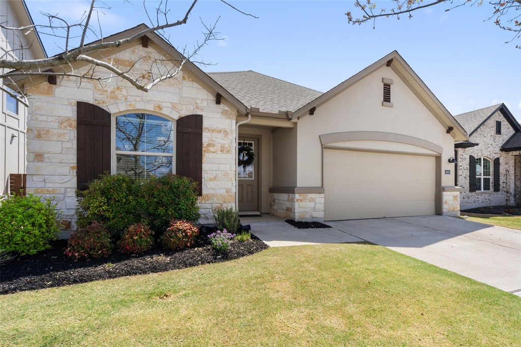 Welcome to 16633 Chevalin St, located in the desirable Provence community of Austin, TX. This beautifully designed residence blends timeless elegance with modern comfort. The stone and stucco exterior creates instant curb appeal while being positioned on a private culd a sac, and inside, soaring ceilings and an open floorplan provide a bright, airy feel throughout. At the front of the home, a dedicated office offers a quiet and functional space for work or study. The modern kitchen is both stylish and practical, featuring abundant cabinetry, generous counter space, a large island with seating, and a spacious dining area nearby"”perfect for everyday living and entertaining alike. Each of the three well-appointed bedrooms offers comfort and privacy. The primary suite features a private bathroom with an oversized walk-in shower, dual vanities, and a walk-in closet. Step outside to unwind in the backyard oasis. Enjoy the custom deck, cozy firepit area with built-in seating, and the shade of mature oak trees"”all framed by beautifully stained fencing that adds style and privacy to the space! Additional features include a water softener and reverse osmosis water!
